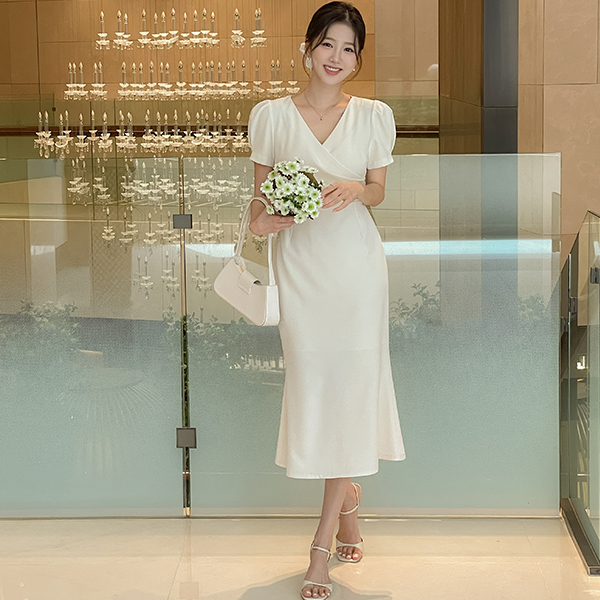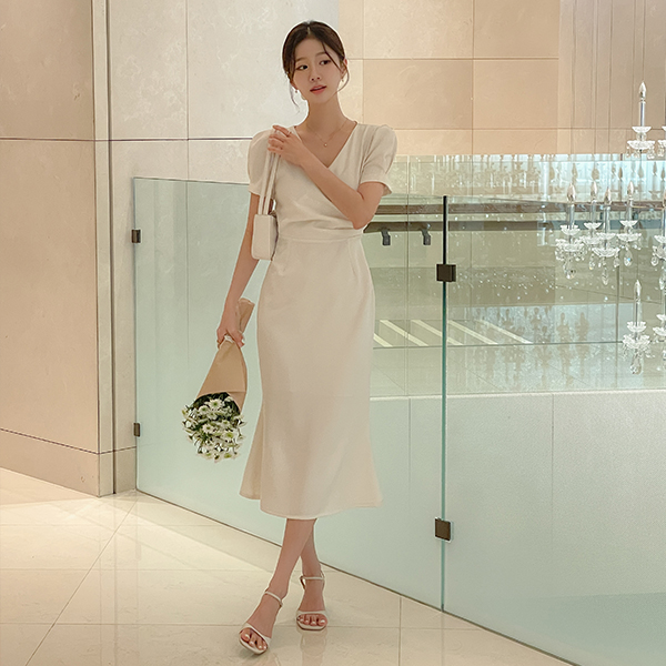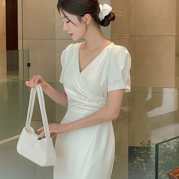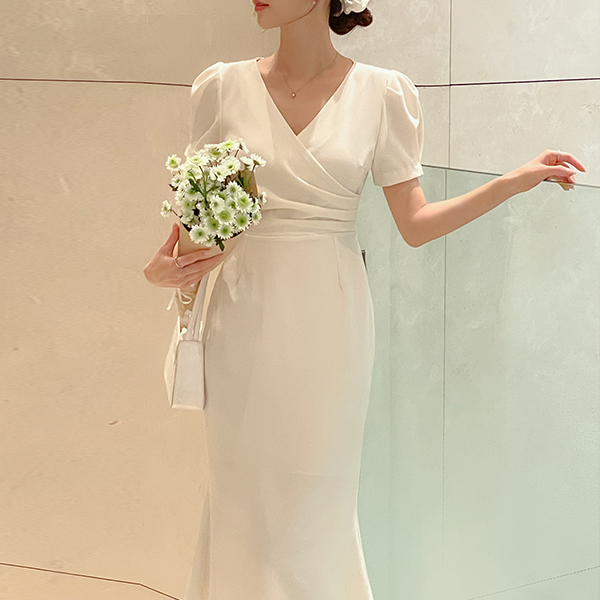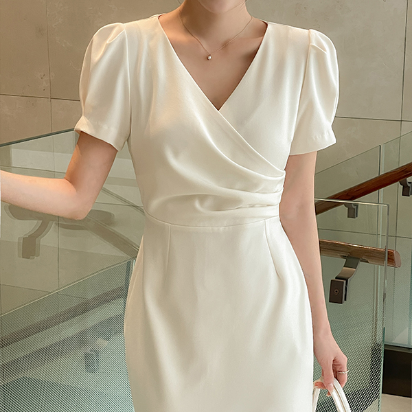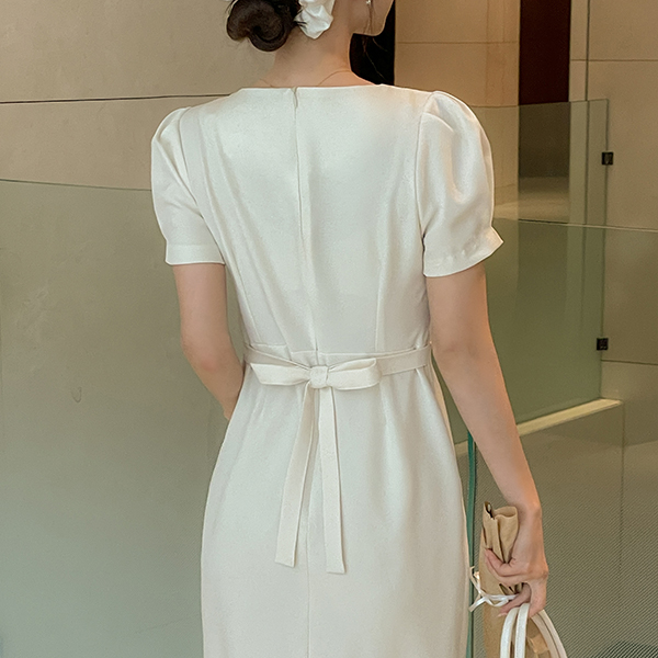 Eli 裹身 泡泡袖 袖 鞋带 连衣裙