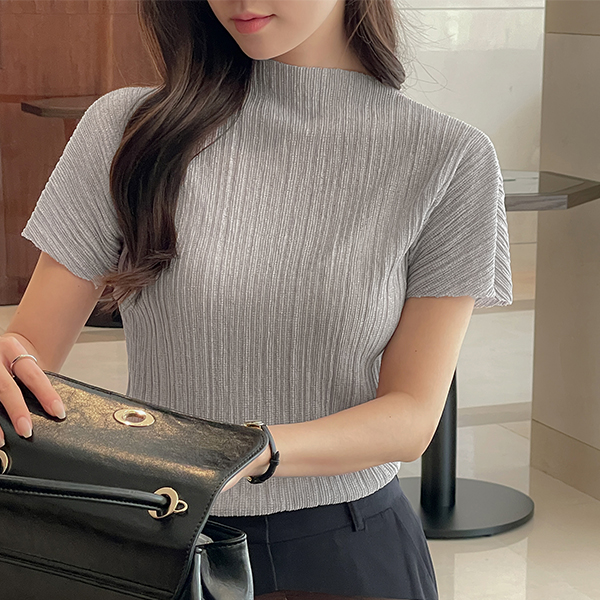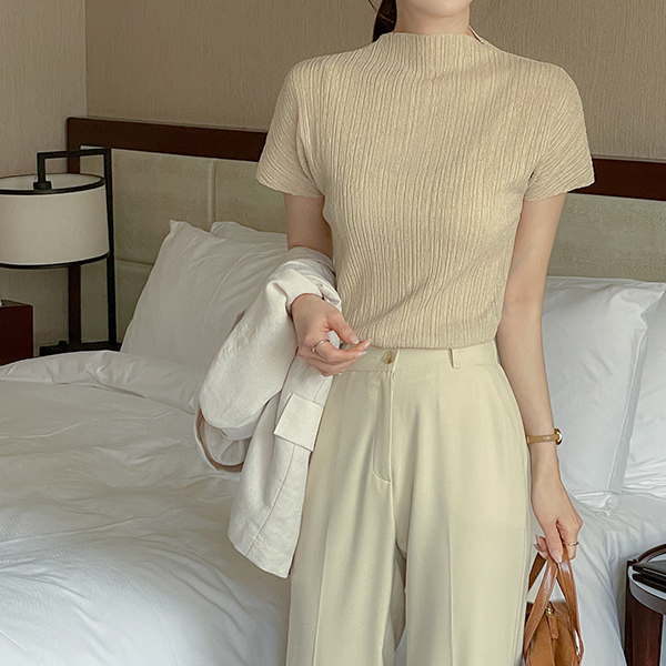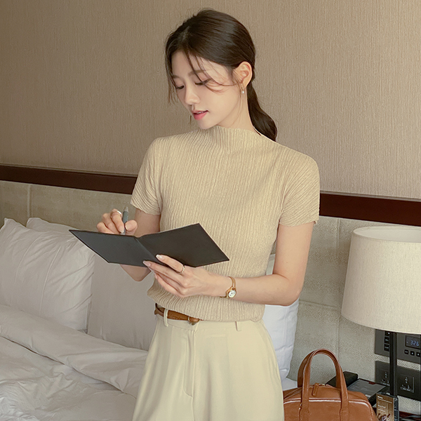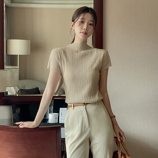 褶边 半高领 领 去皱纹 罩衫 T恤衫