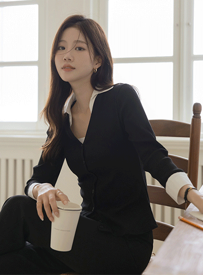 衬衫 配色 7分袖 开衫