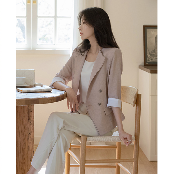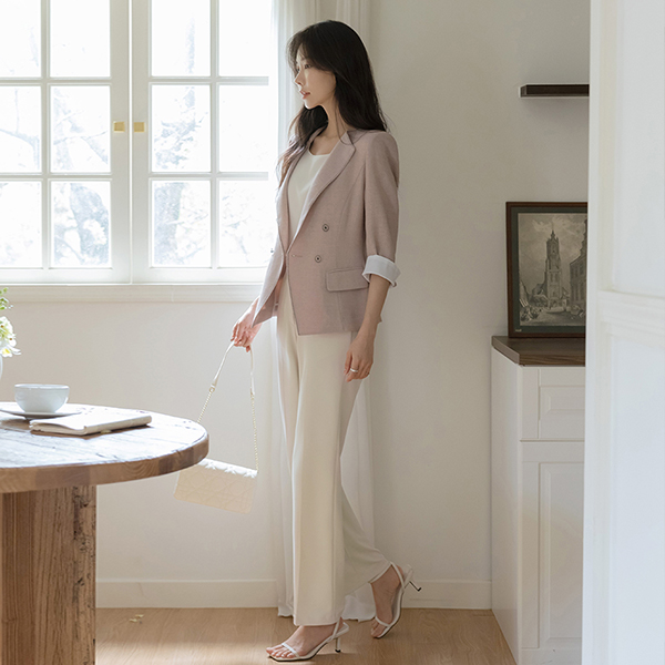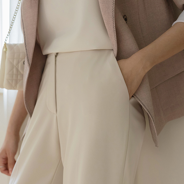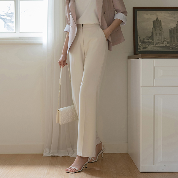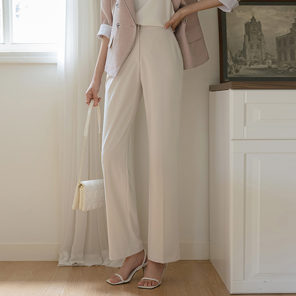 细密 基本 后腰松紧带 一字型 宽松长裤