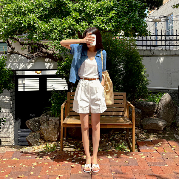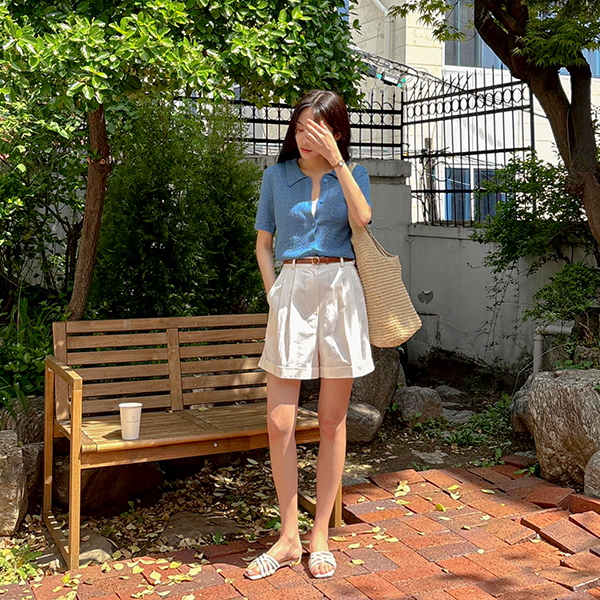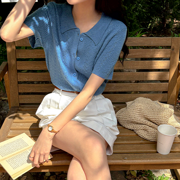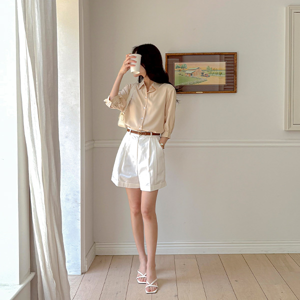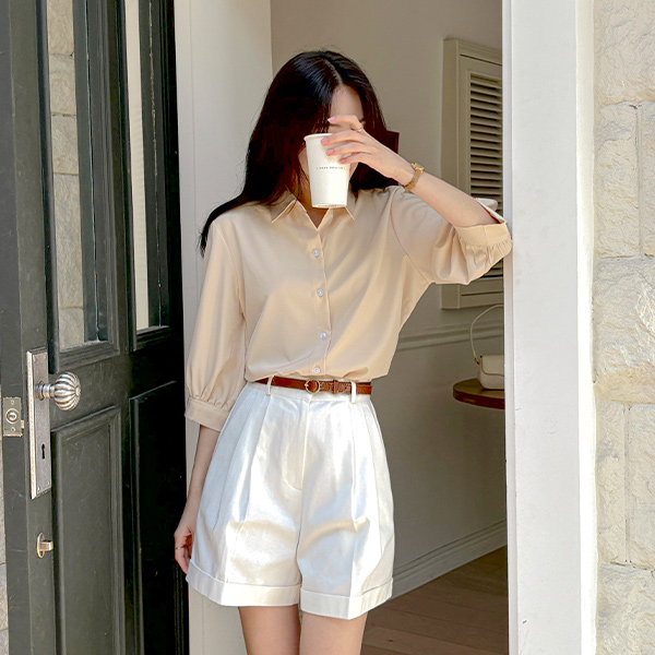(1+1할인) 褶皱 7分袖 柔丝 弹力 罩衫
