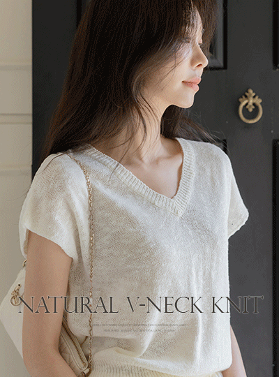 自然 V字领 帽檐袖 针织衫