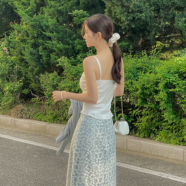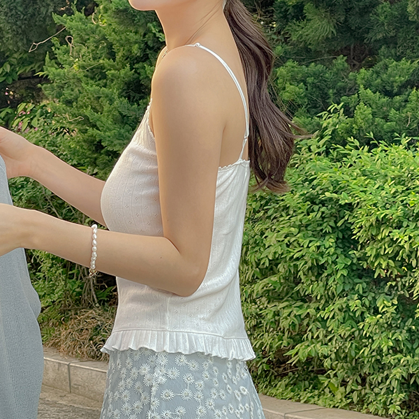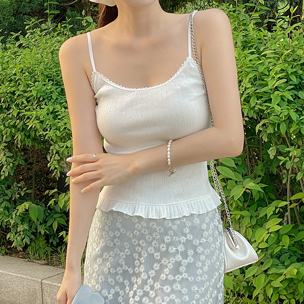 荷叶 印花 蕾丝领 吊带背心