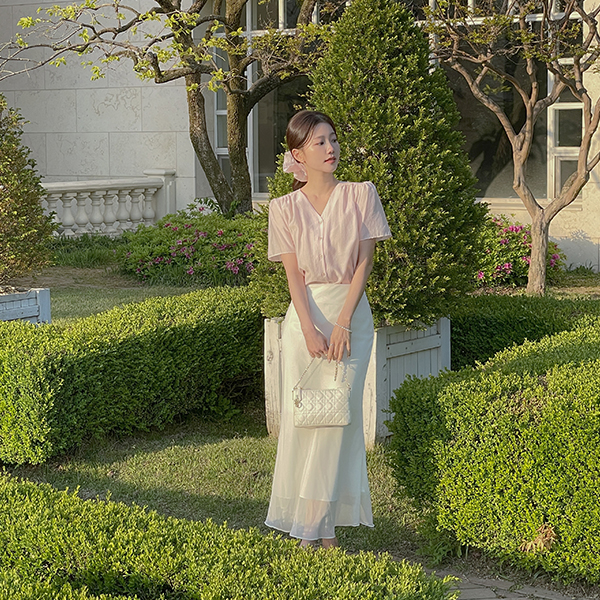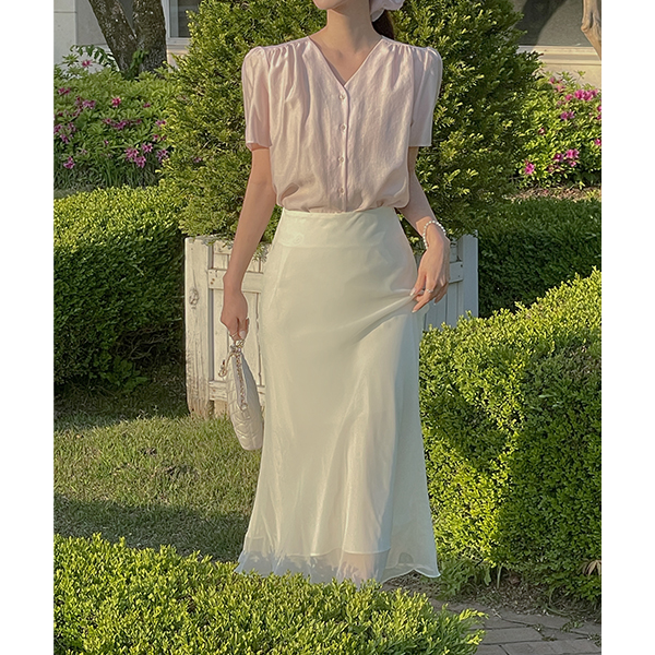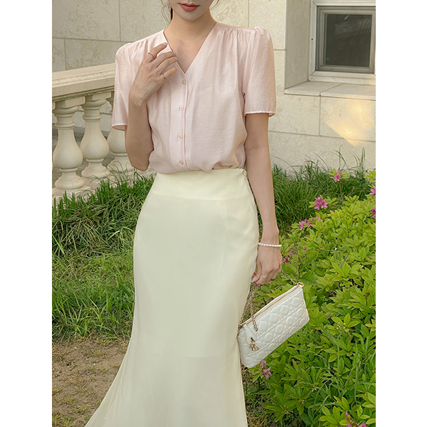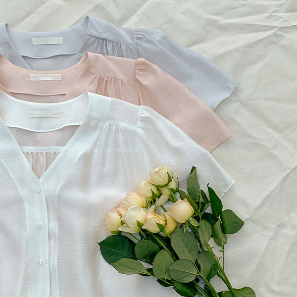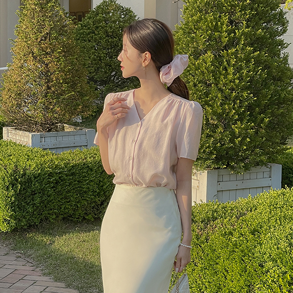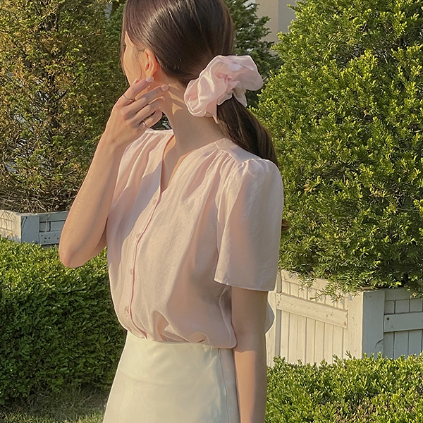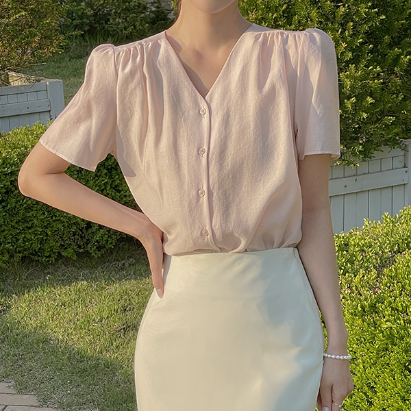 罗彻 V领 泡泡袖 罩衫