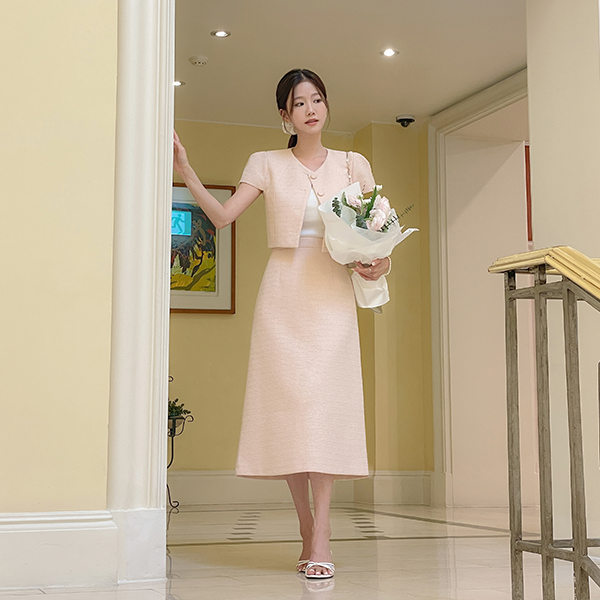 大提琴 粗呢 泡泡袖 7分裤 Set-up 夹克