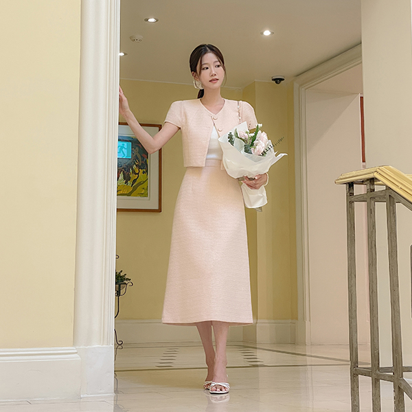 大提琴 粗呢 泡泡袖 7分裤 Set-up 夹克