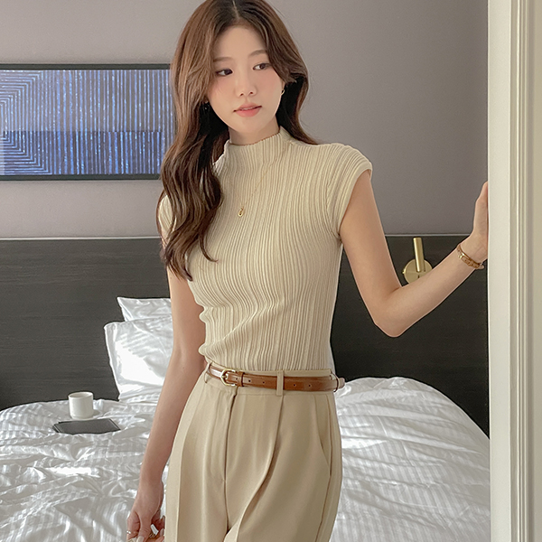合奏 去皱纹 반목넥 帽檐袖 针织衫