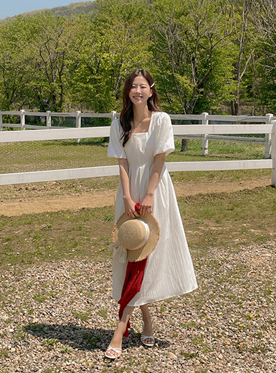 泡泡袖 袖 细褶 鞋带 连衣裙