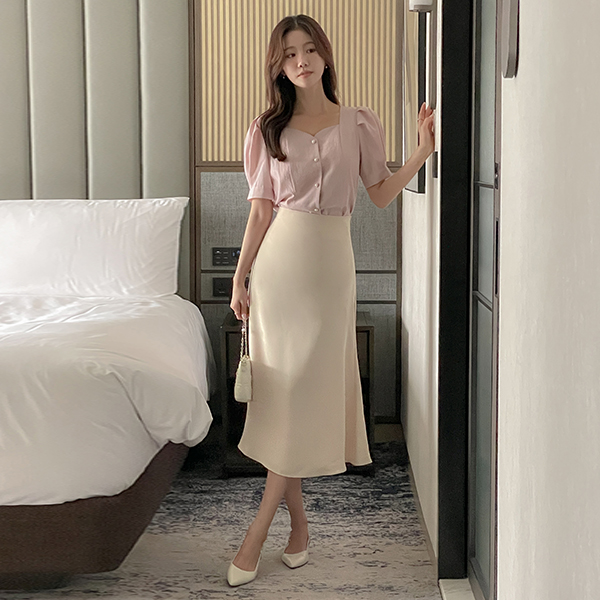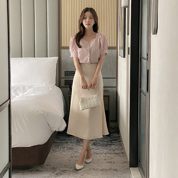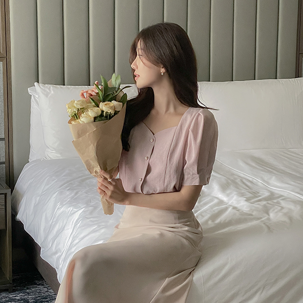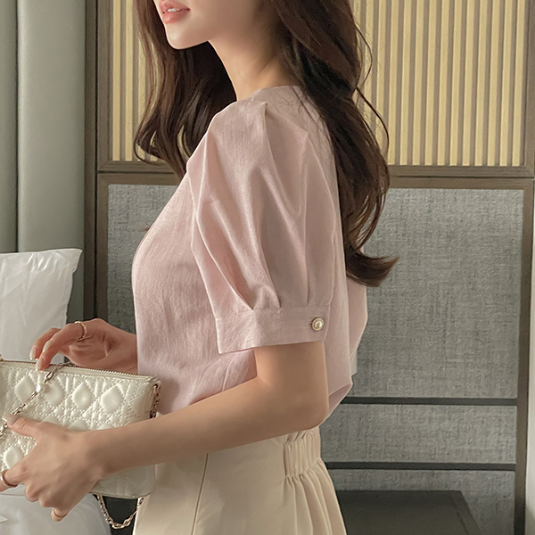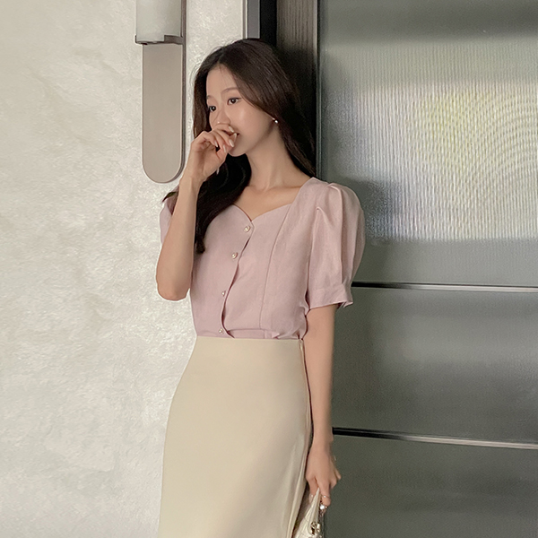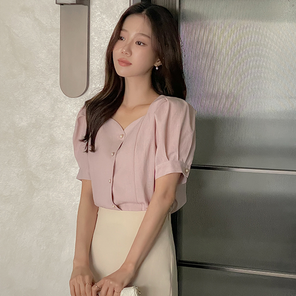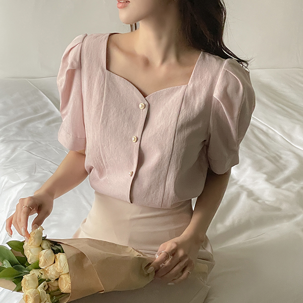 心形领 泡泡袖 罩衫