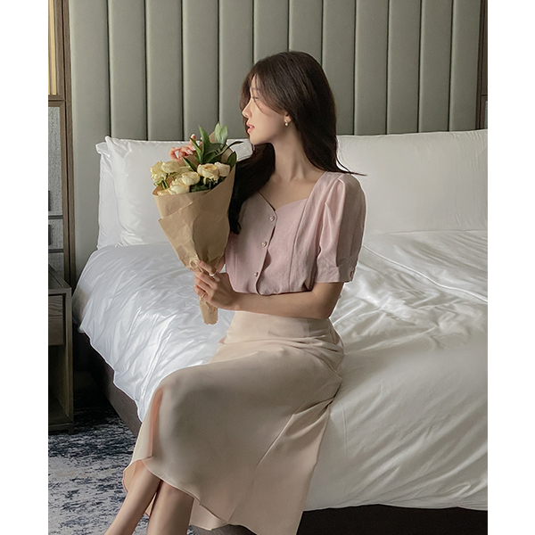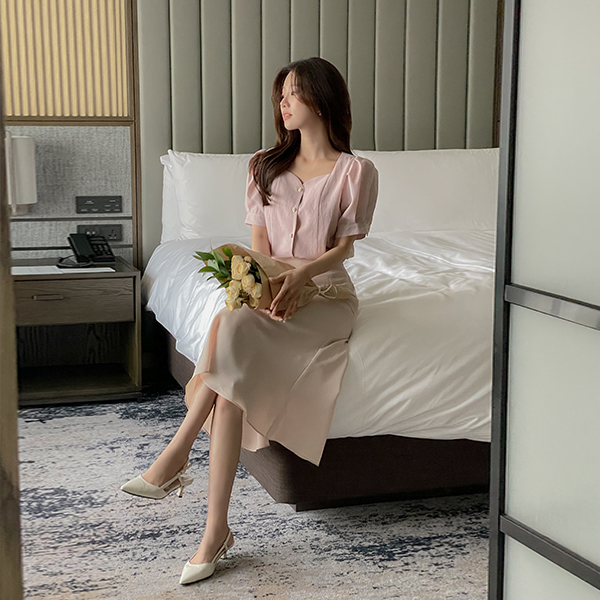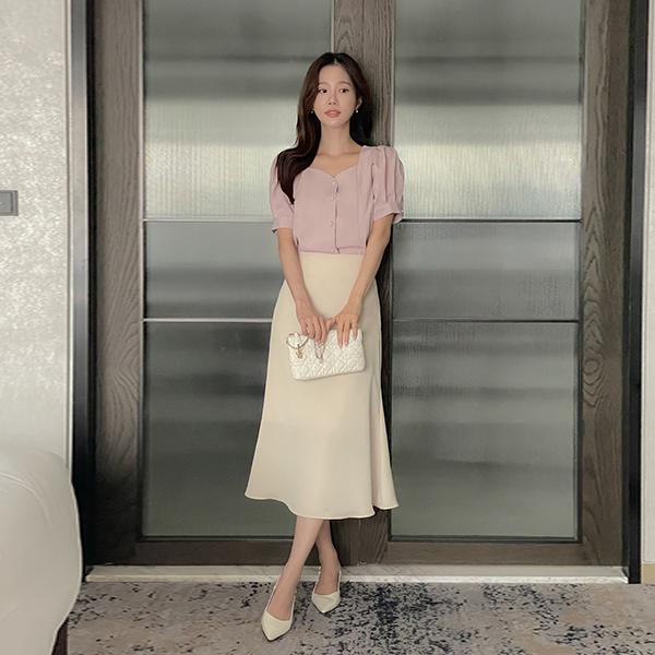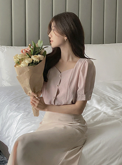 心形领 泡泡袖 罩衫