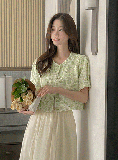 LOVE 混合 泡泡袖 粗呢 夹克