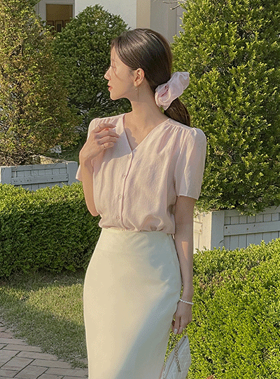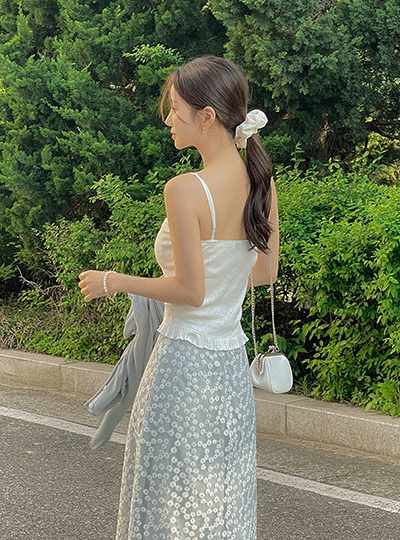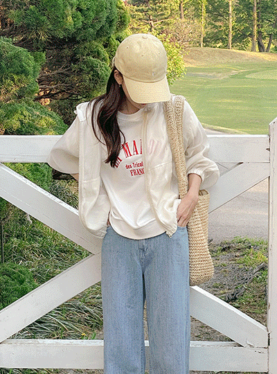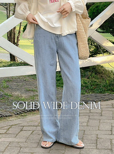 T 宽绰 后侧松紧带 牛仔色 裤子
