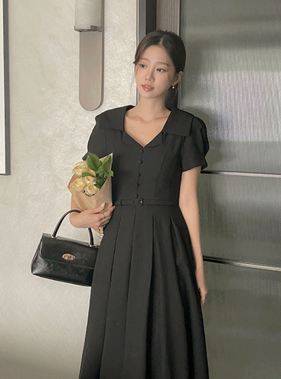 Loel 有光泽 堆领 短袖 罩衫(+腰带)