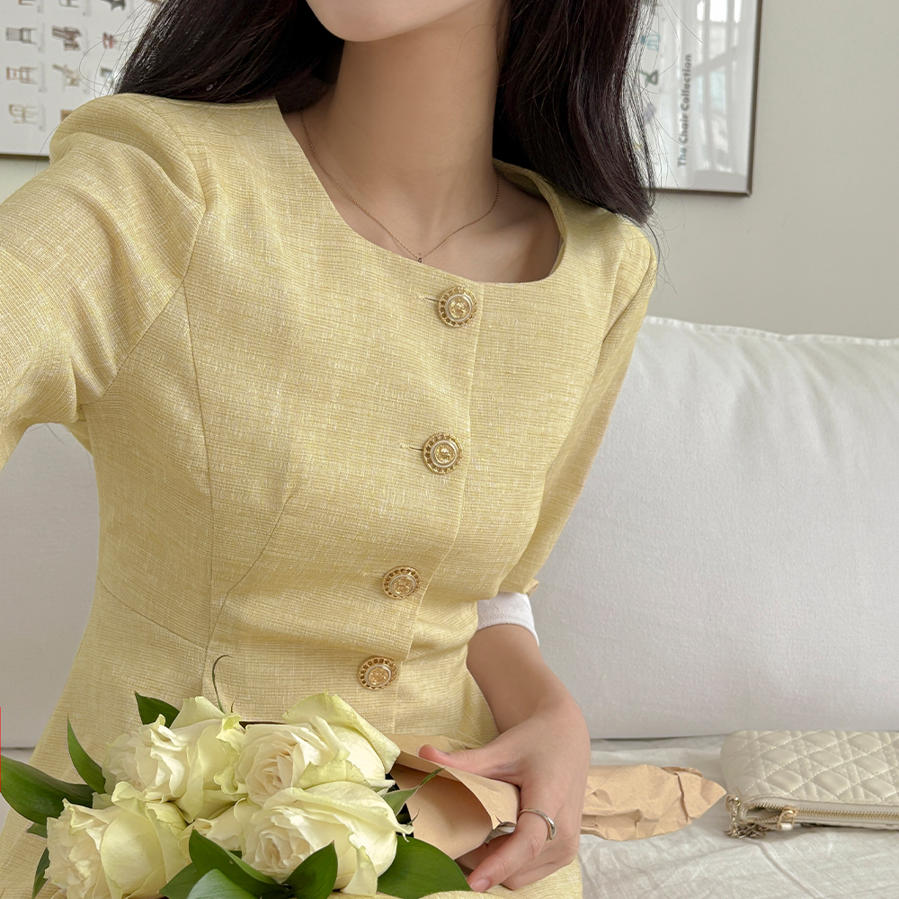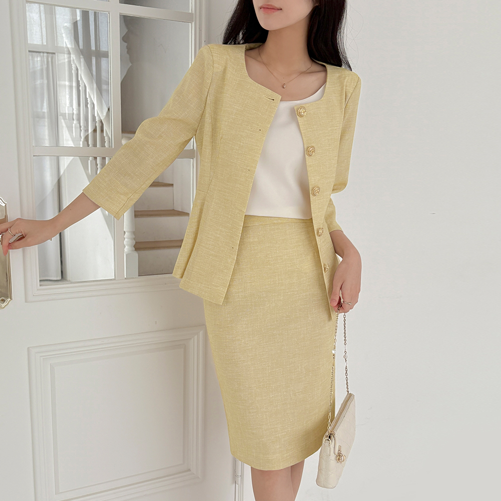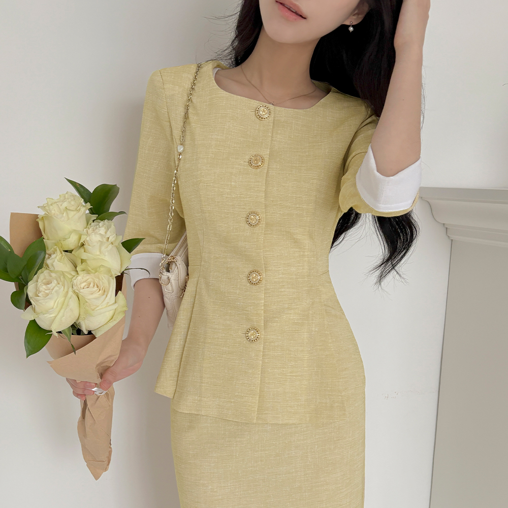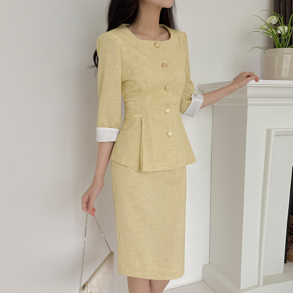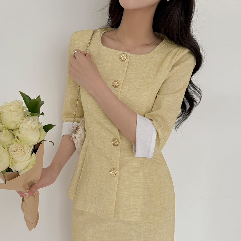 亚麻 7分 配色 荷叶边 Set-up 夹克
