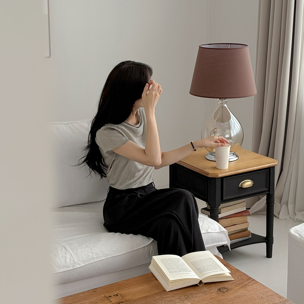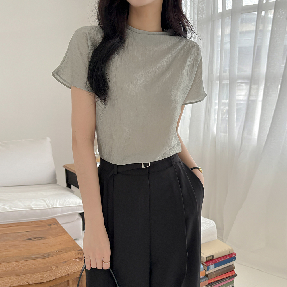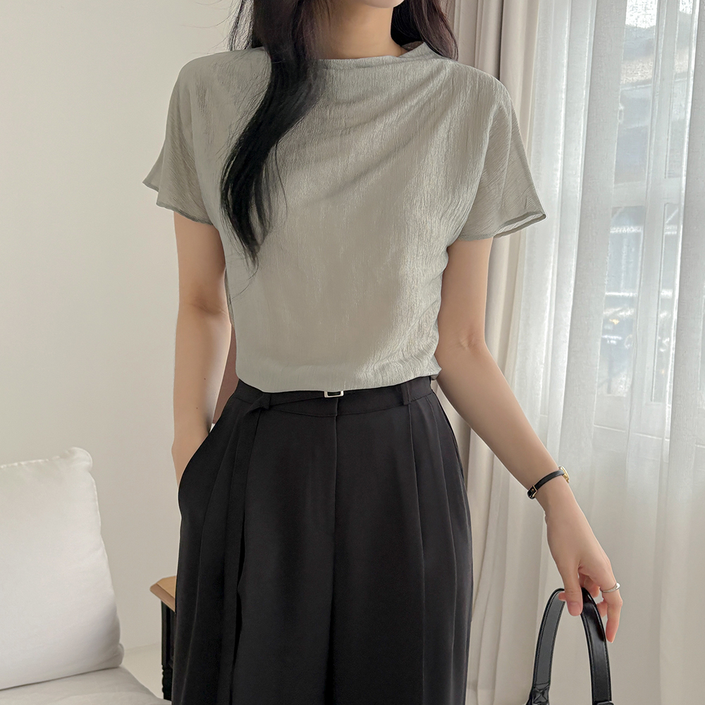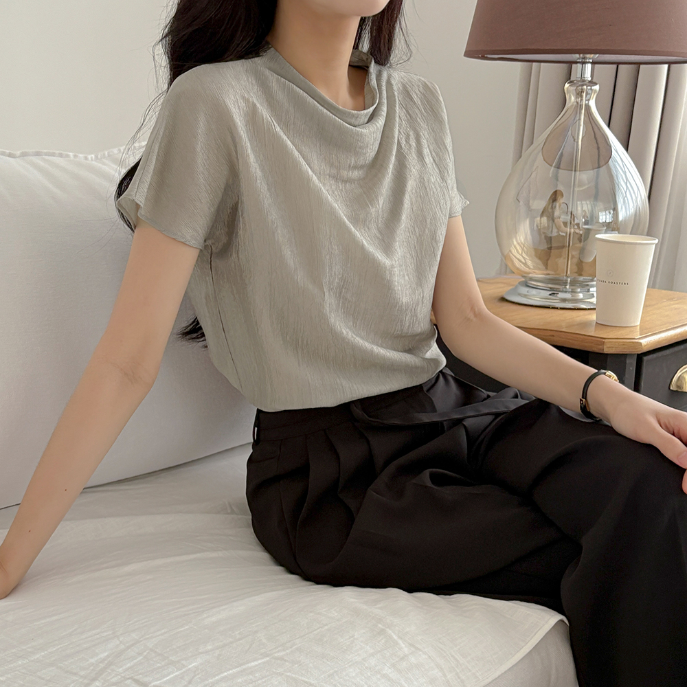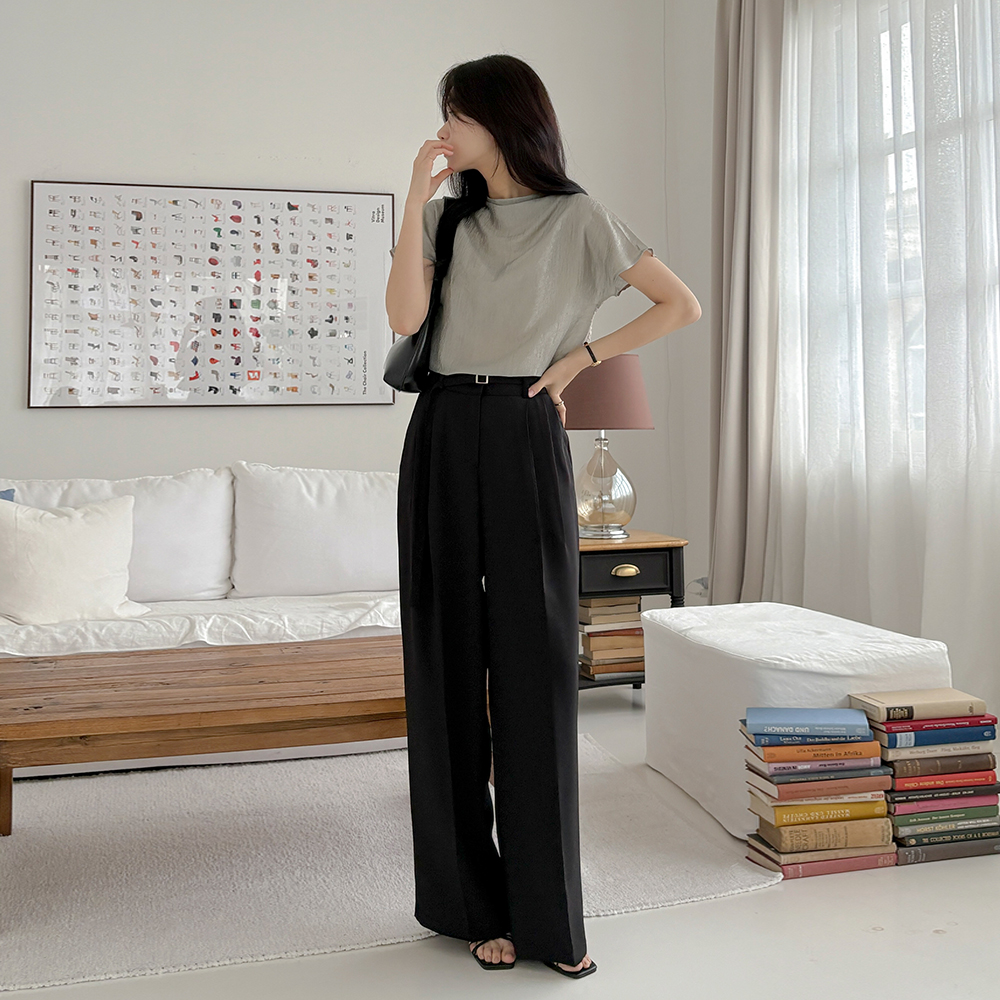 凉爽 双 细褶 宽松 宽松长裤(+腰带)