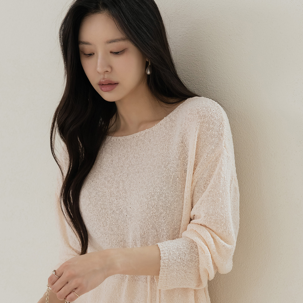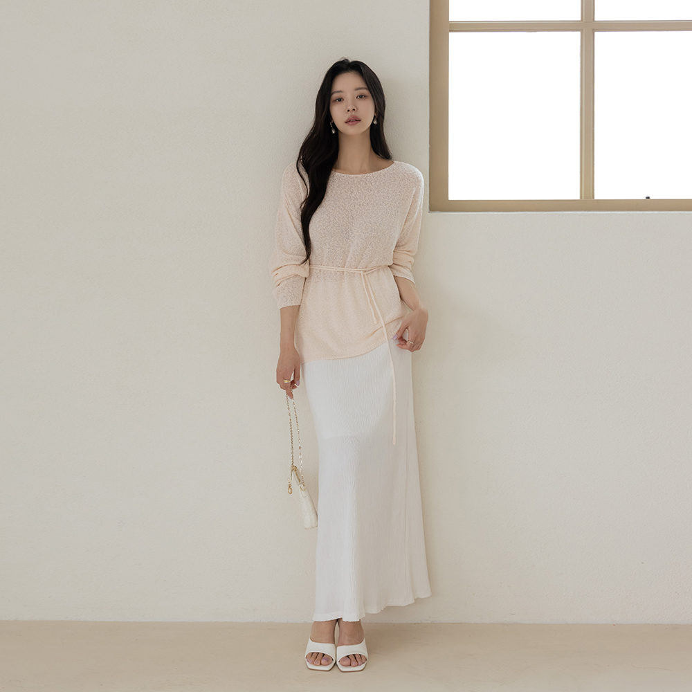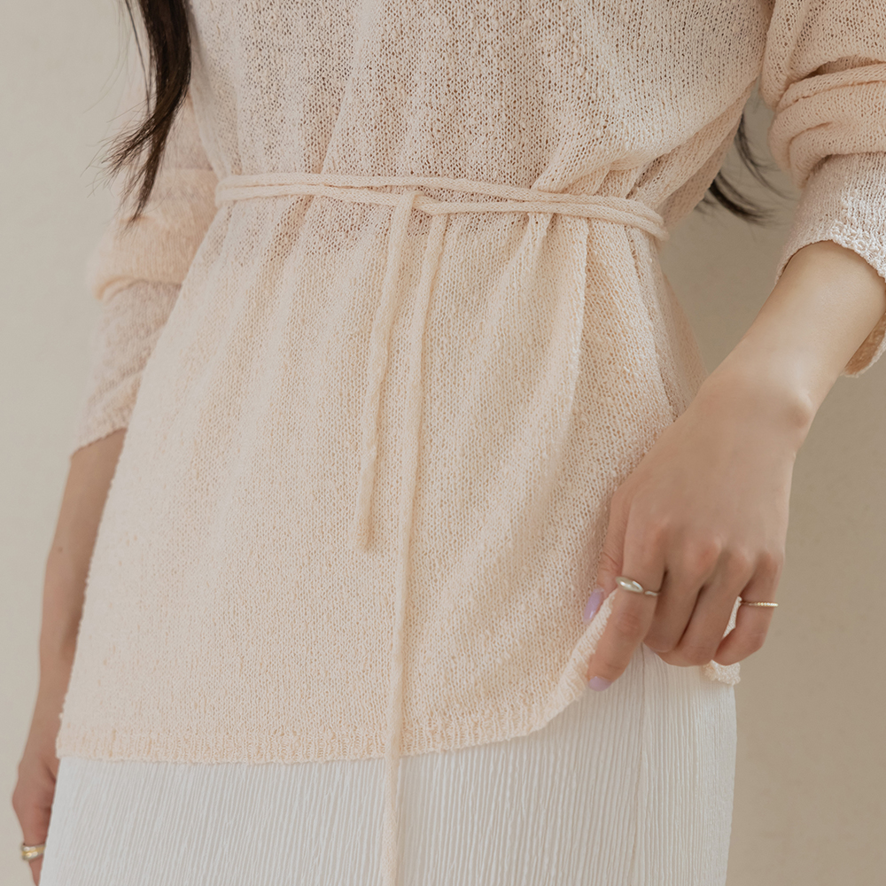 Peach 苗条 结子花式 船形领 针织衫(+腰带)