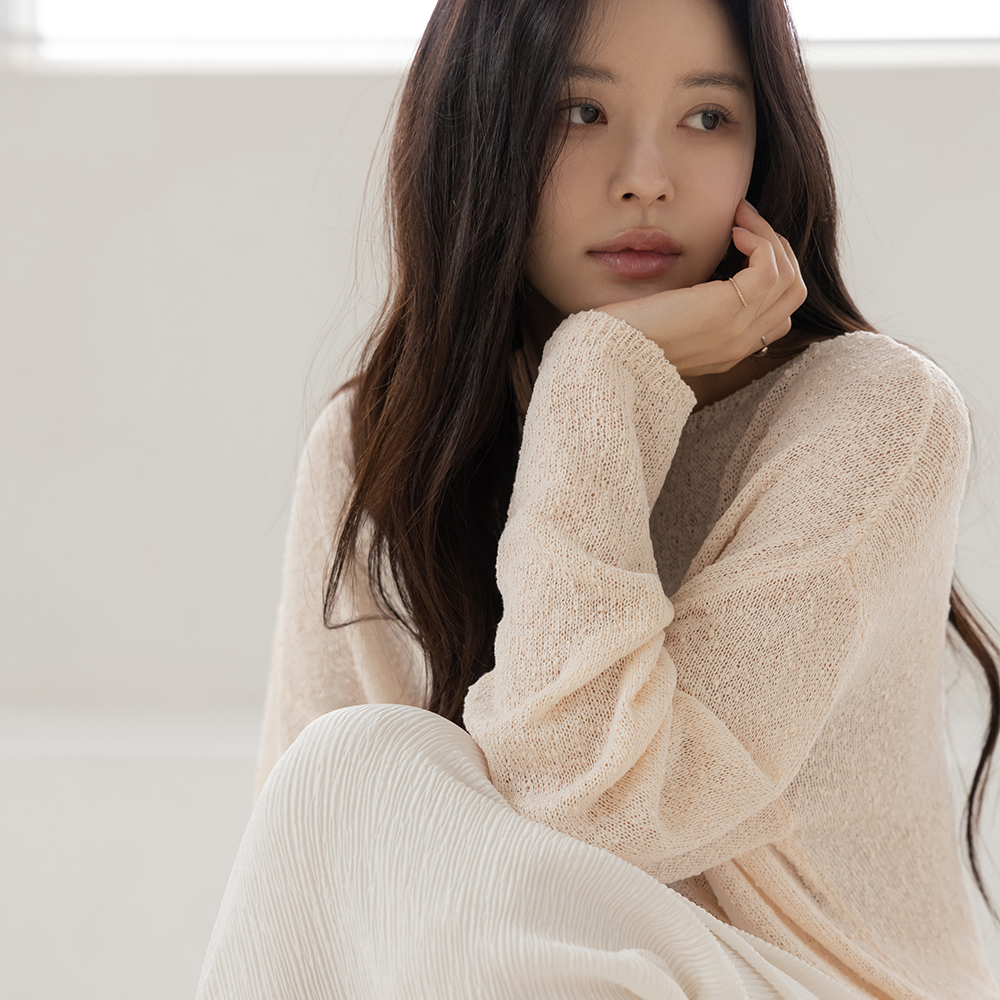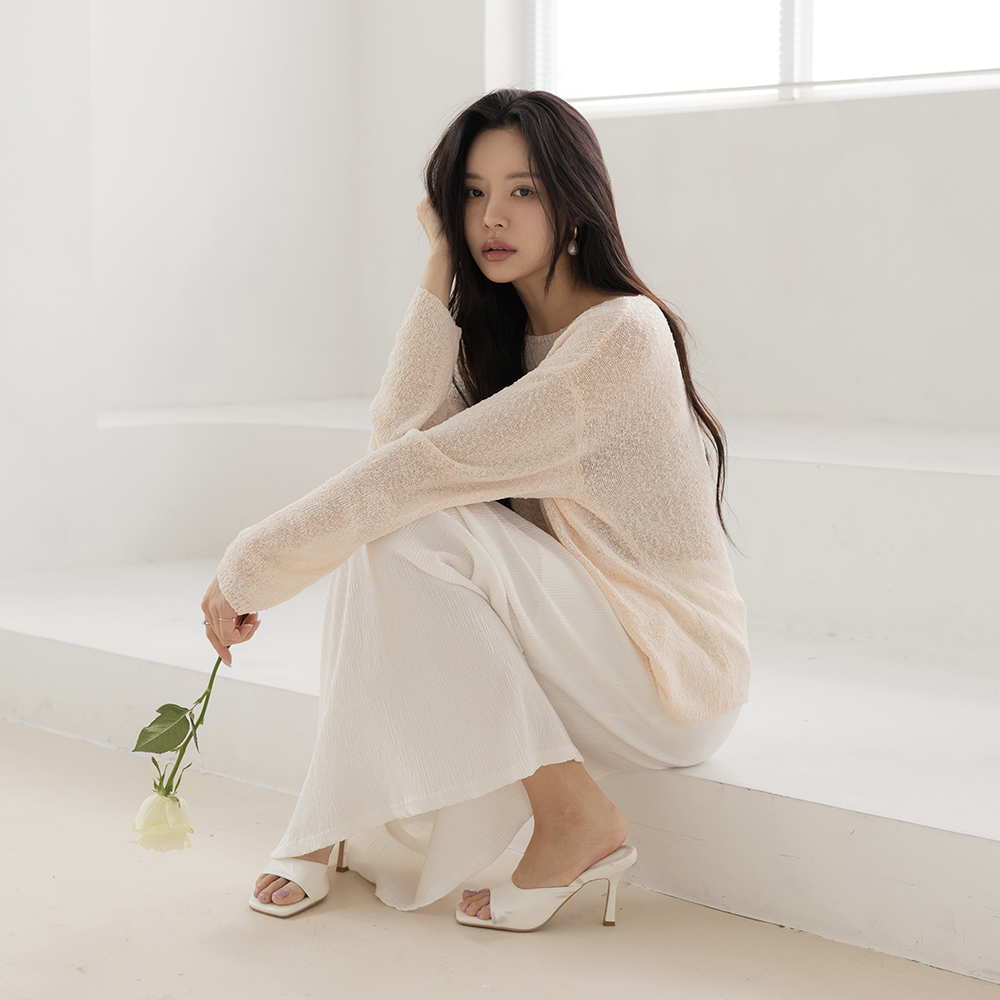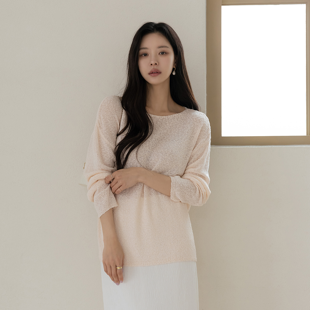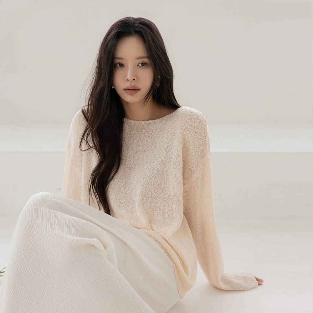 Peach 苗条 结子花式 船形领 针织衫(+腰带)