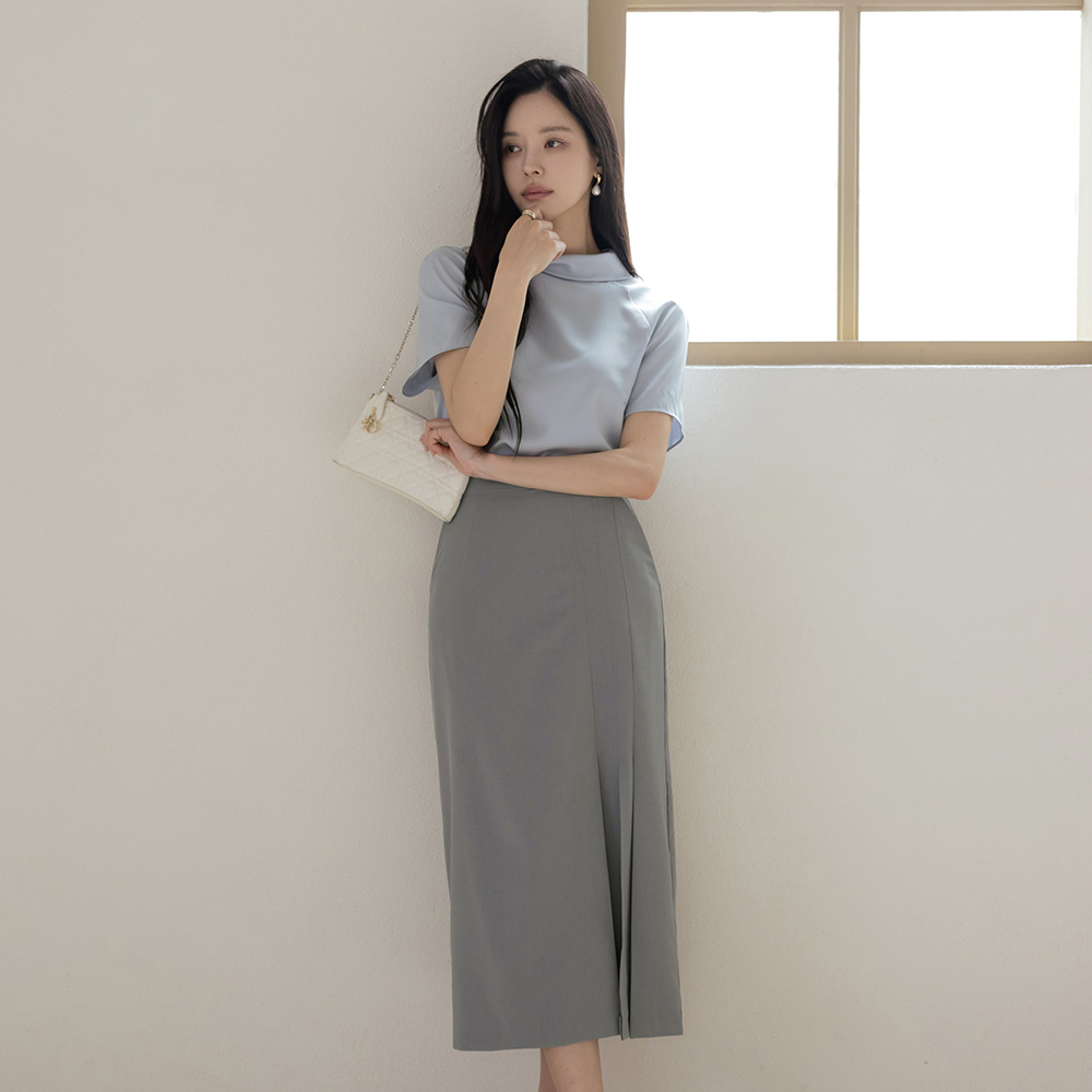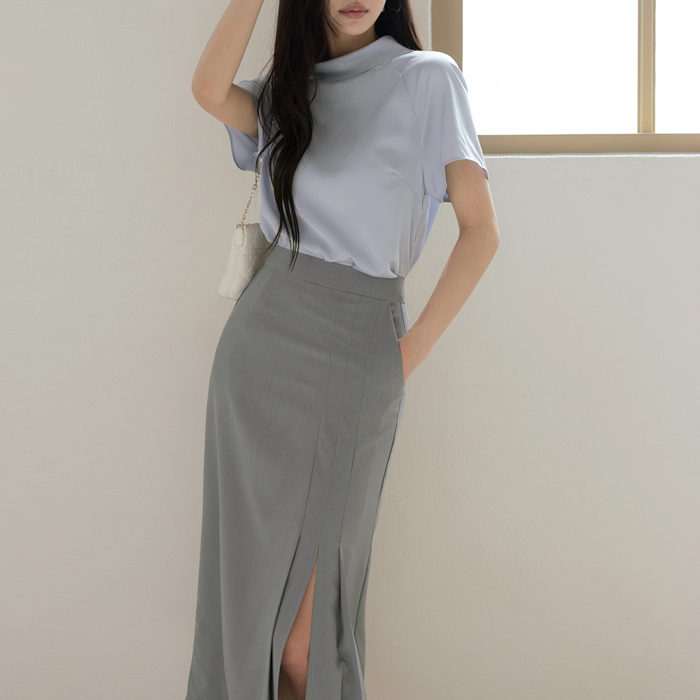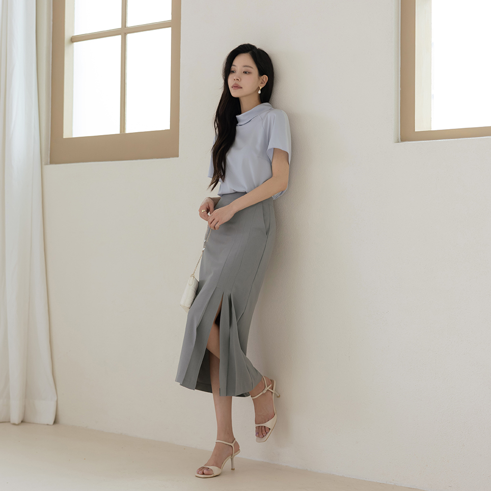 摩登 褶边 H字型 开衩 裙子