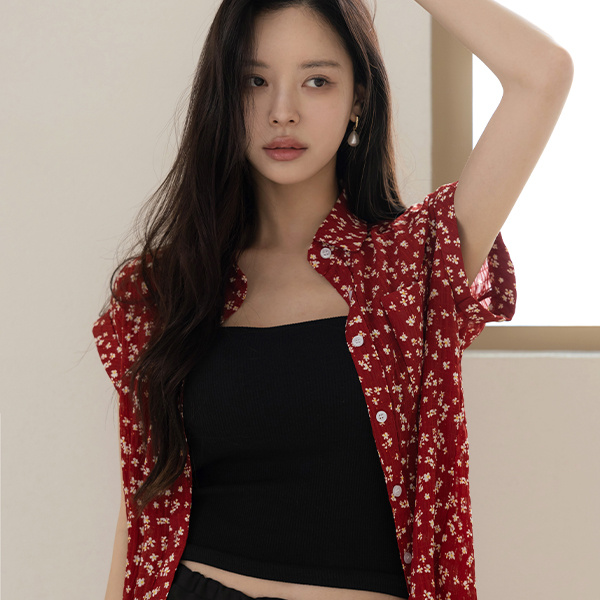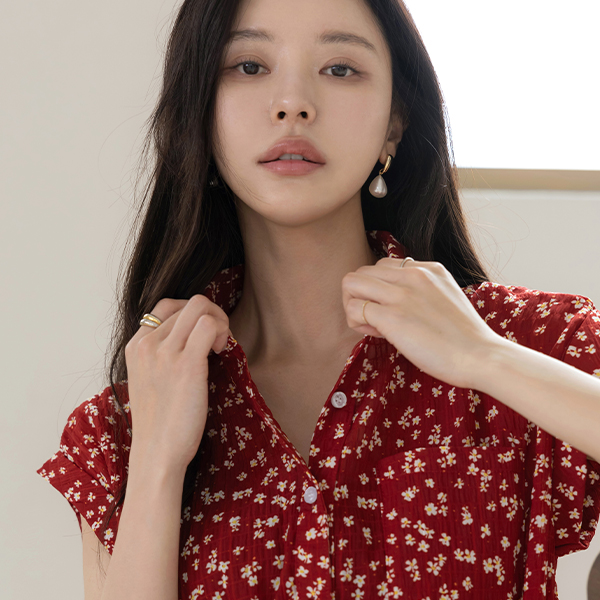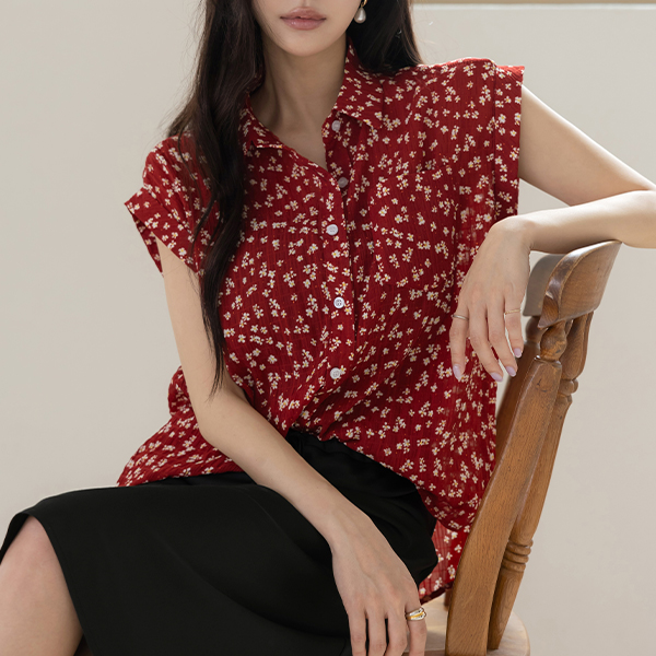 碎花 领子 去皱纹 卷边 衬衫