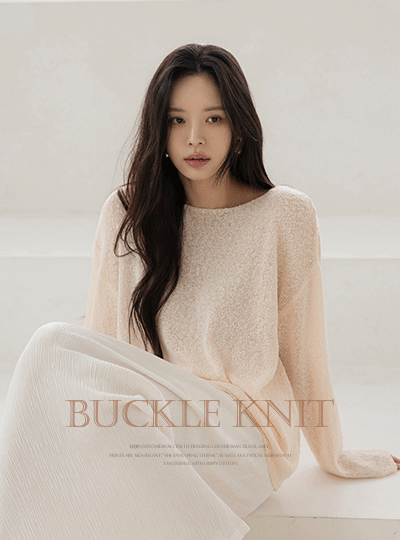 Peach 苗条 结子花式 船形领 针织衫(+腰带)