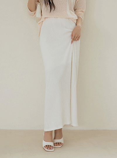细密 褶边 松紧带 长款 裙子