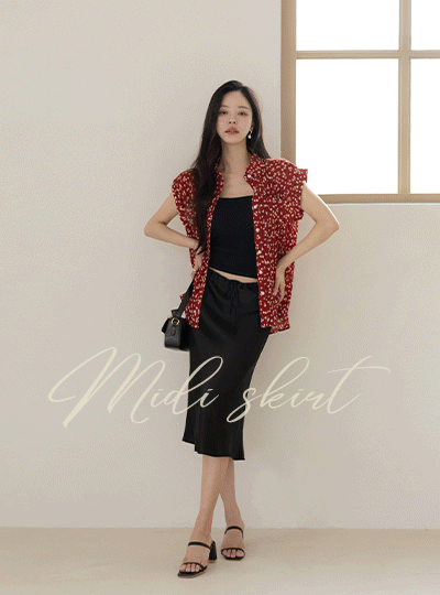 抽绳 绸缎 中长 裙子