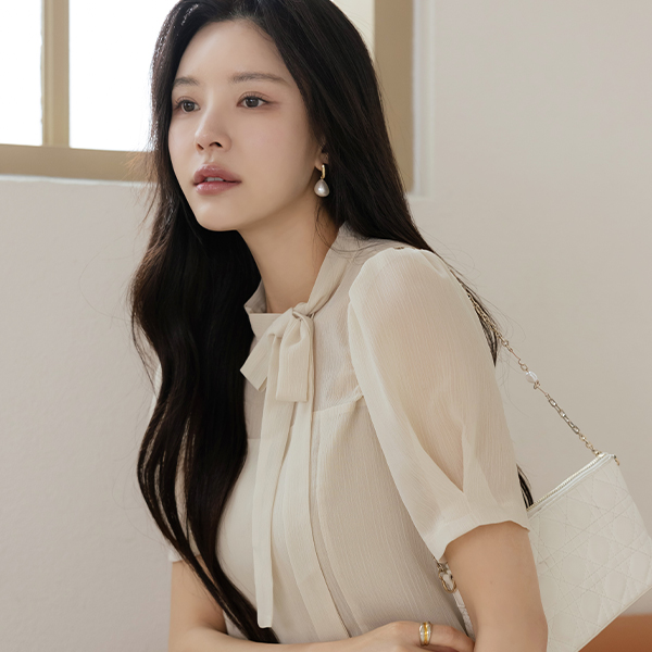 后侧纽扣 翻领 有光泽 罩衫