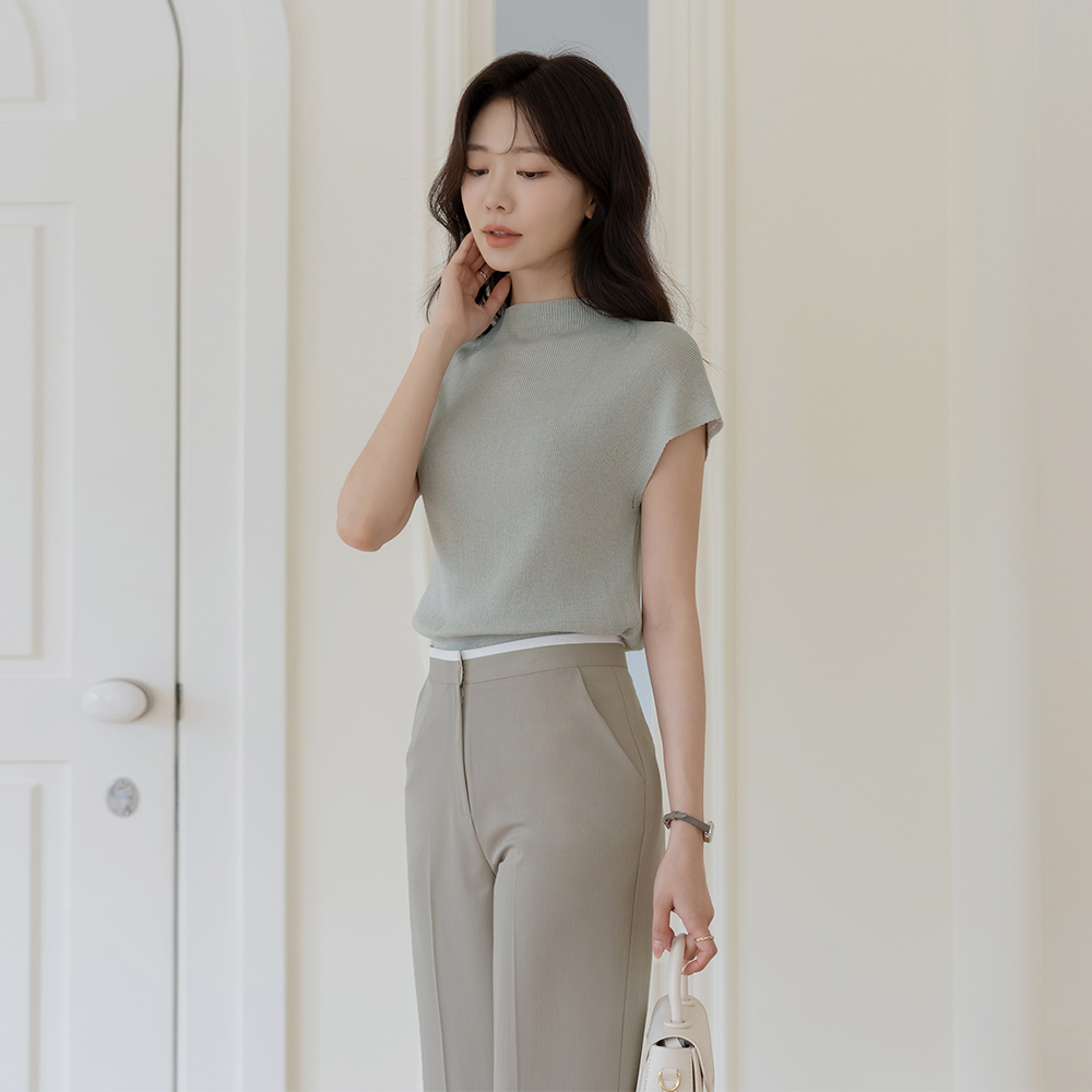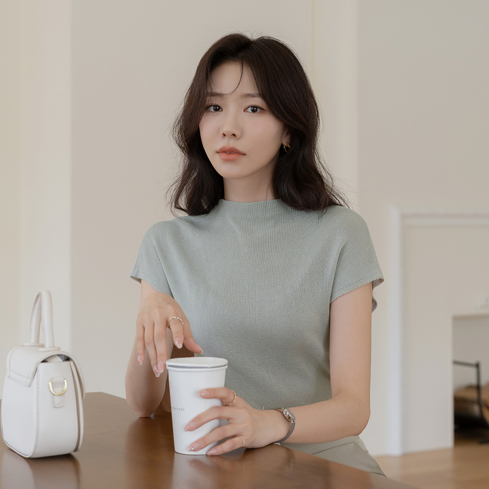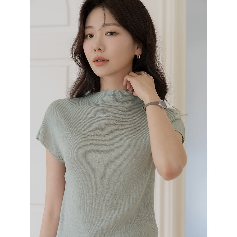 夏天 亚麻 半高领 帽檐袖 针织衫