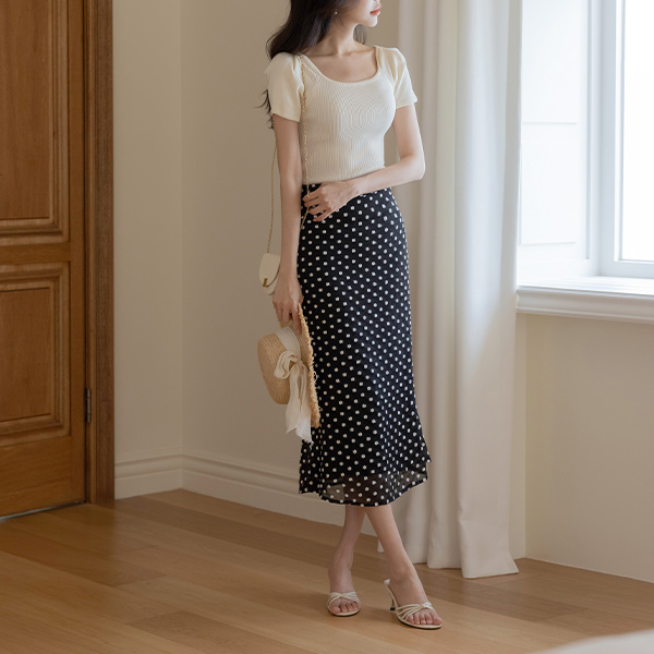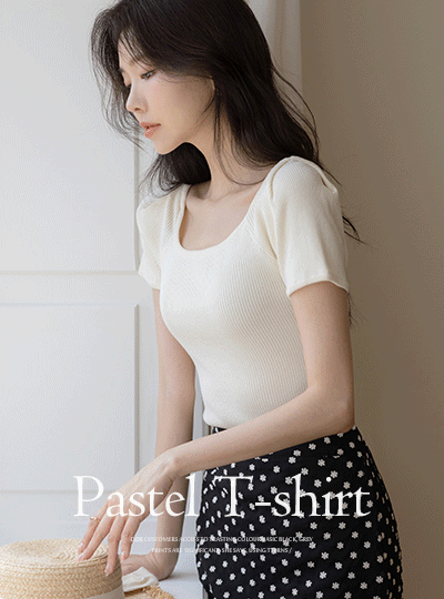 柔色 方领 泡泡袖 条绒 T恤衫