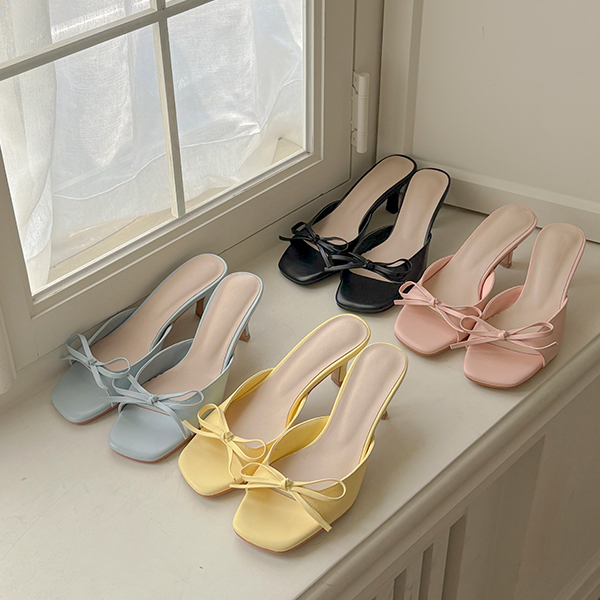 柔色 颜色 蝴蝶结 오픈토 高跟鞋