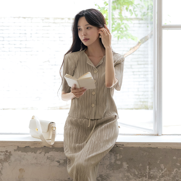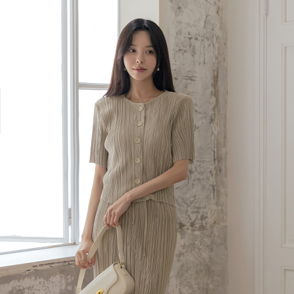 大红色 圆领 褶边 凉爽 Set-up 夹克