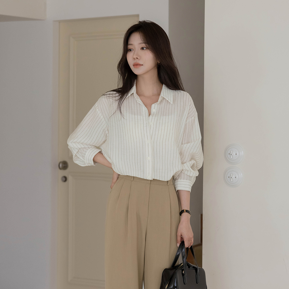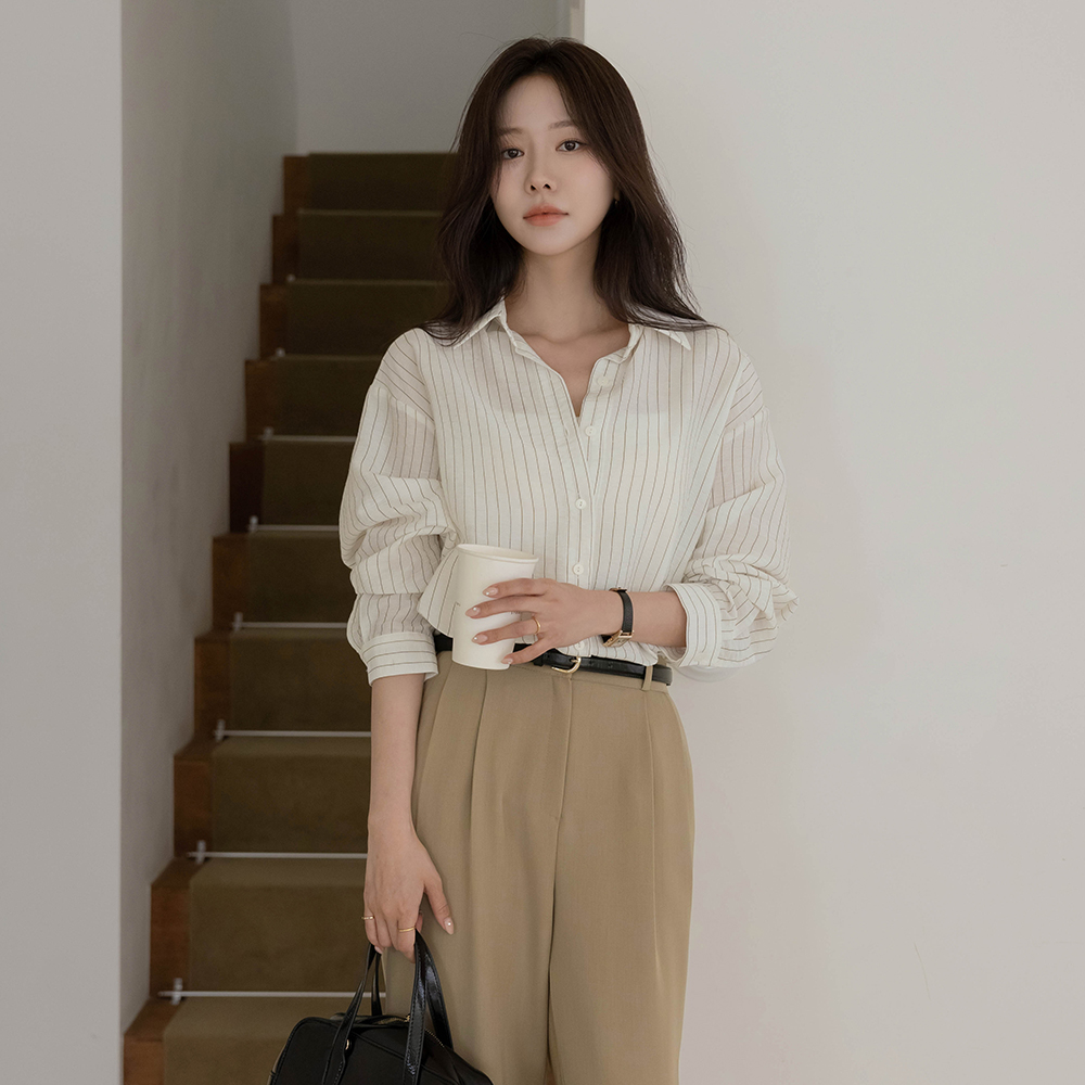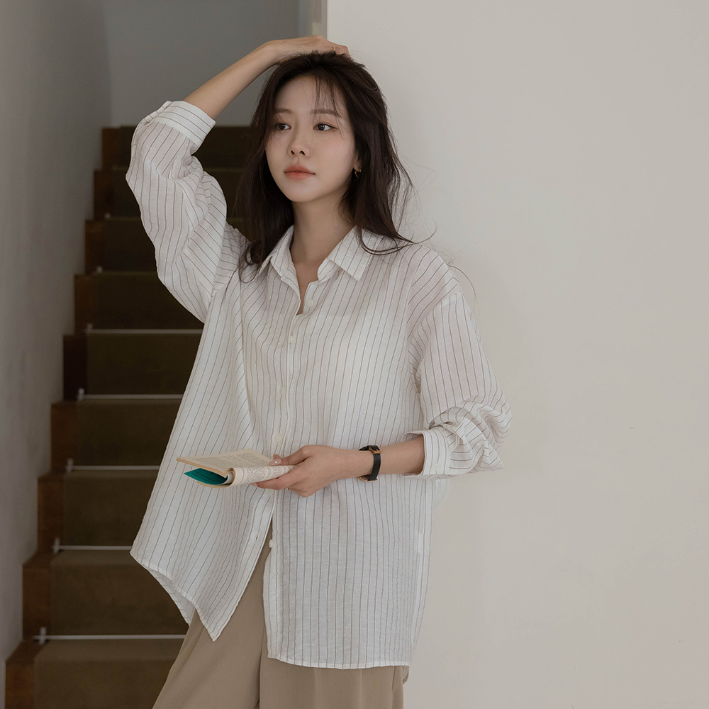 灯光 条纹 宽松 衬衫