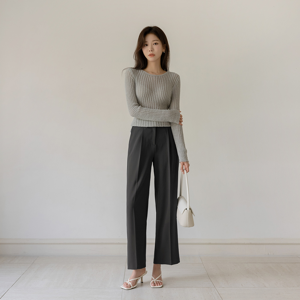 职业装 摩登 后腰松紧带 宽松 宽松长裤