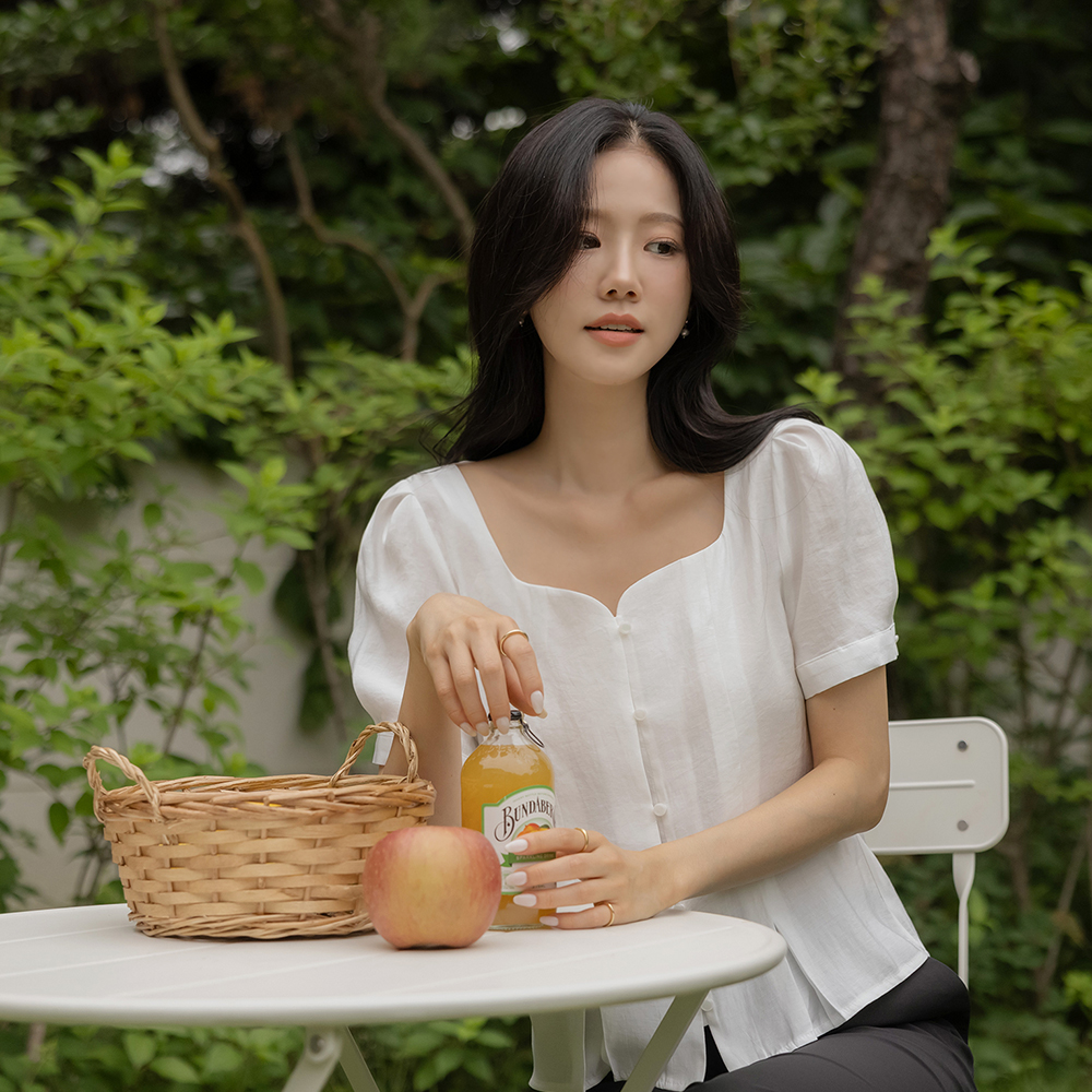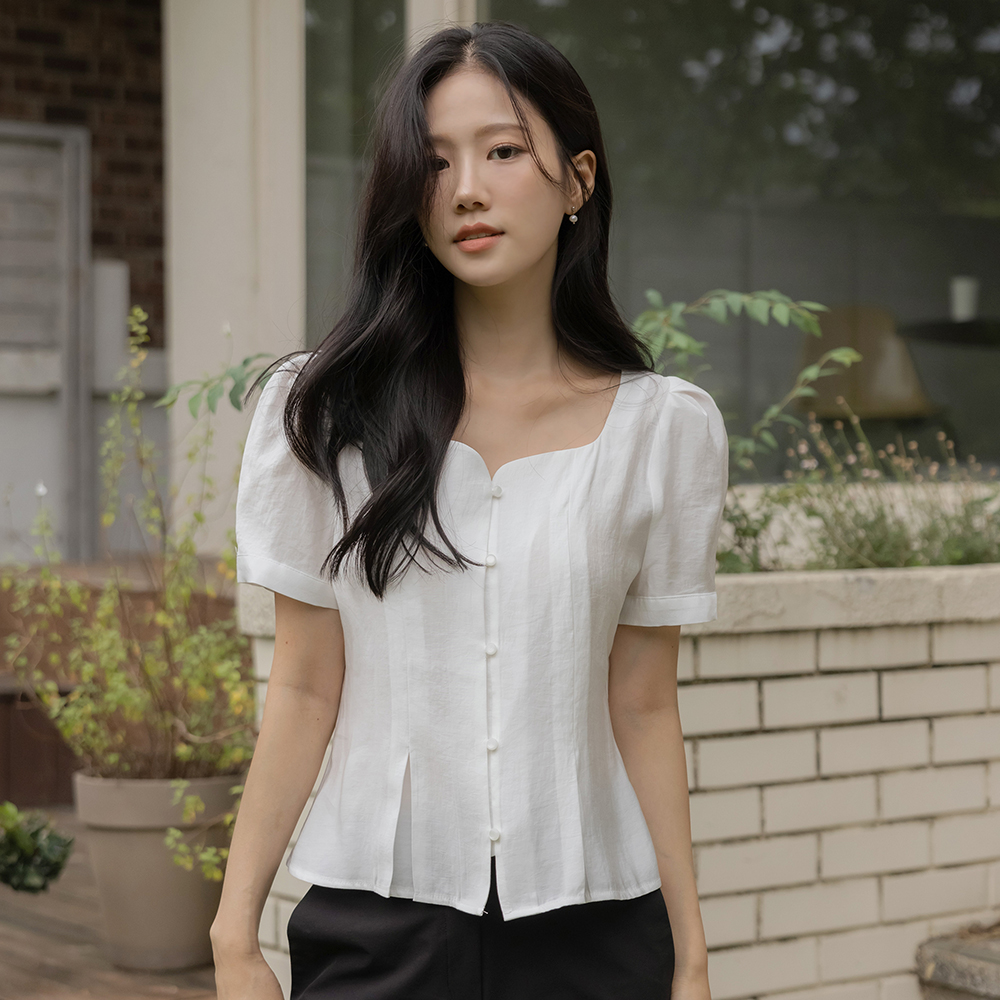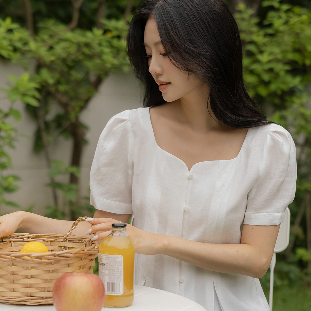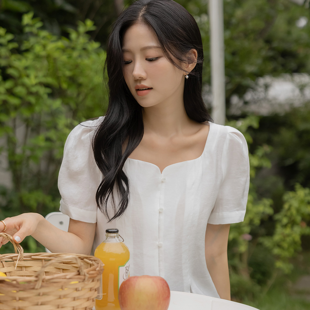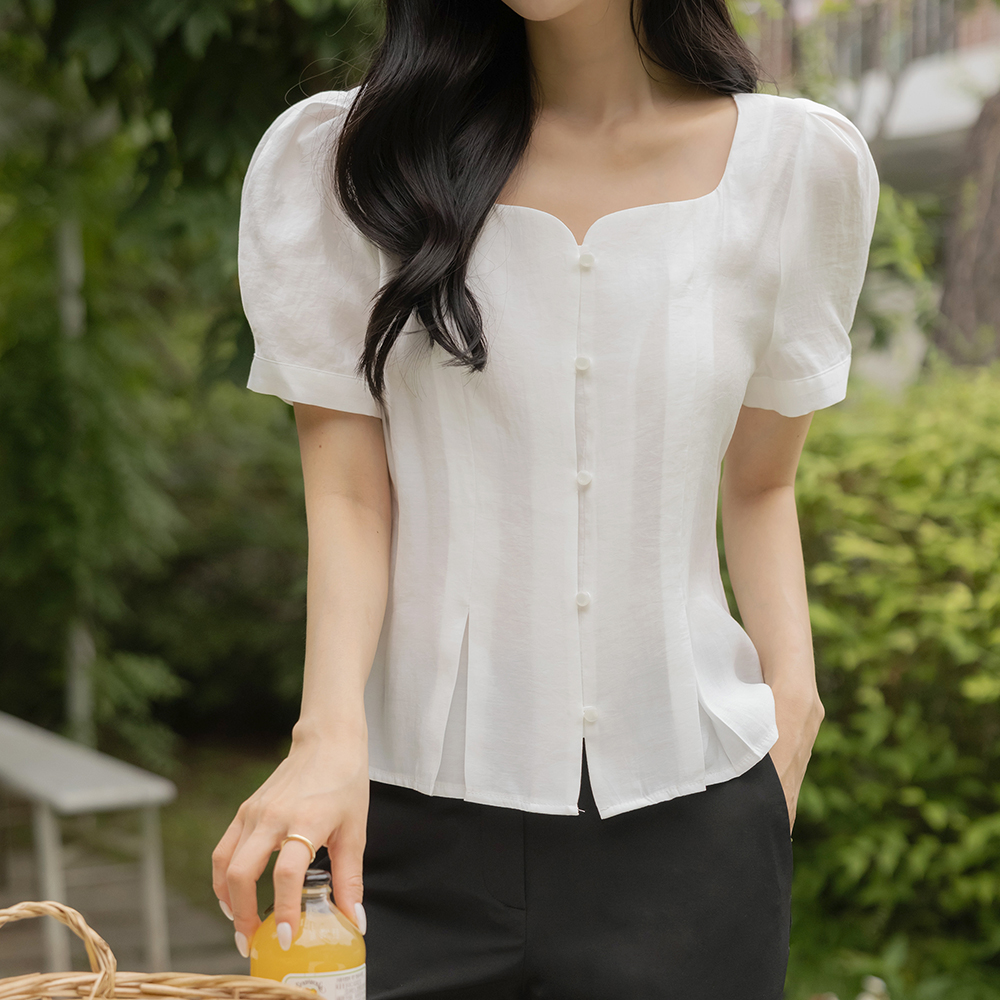 最少 爱心 方领 泡泡袖 罩衫