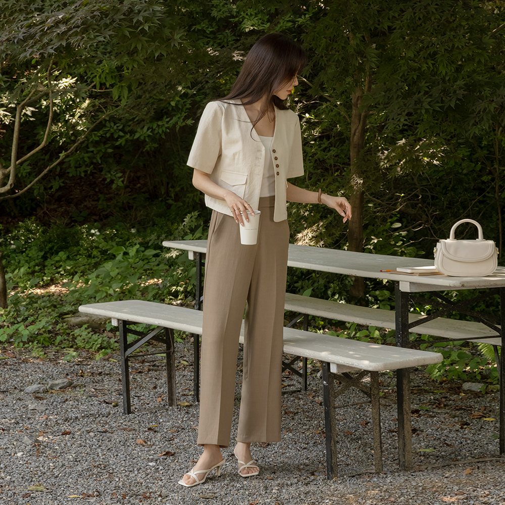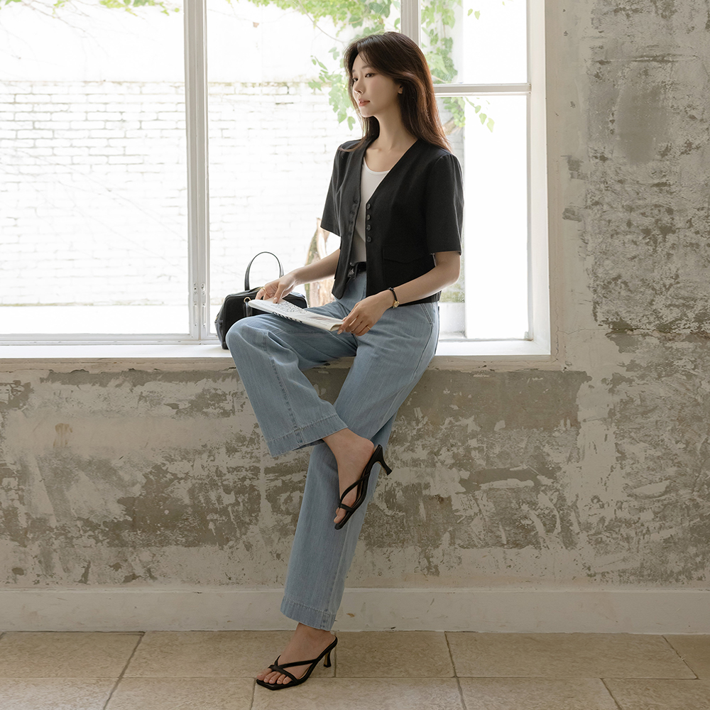 夏天 쿨이지 后侧松紧带 宽松 牛仔色 裤子