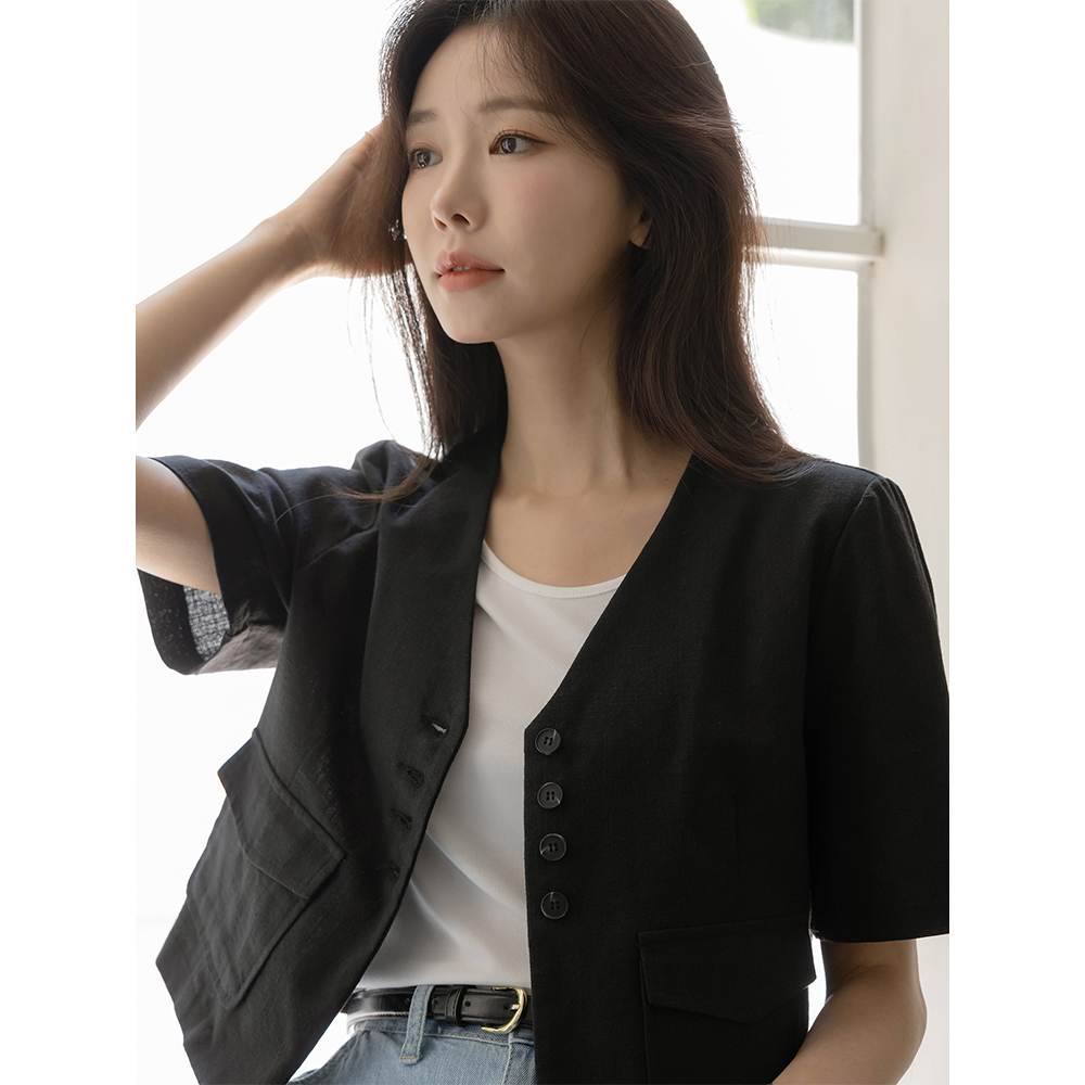 直筒 领口线 帽檐 내장 条绒 背心T恤