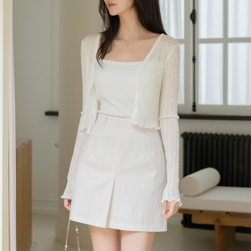 苗条 透视 短上衣 敞开式 开衫