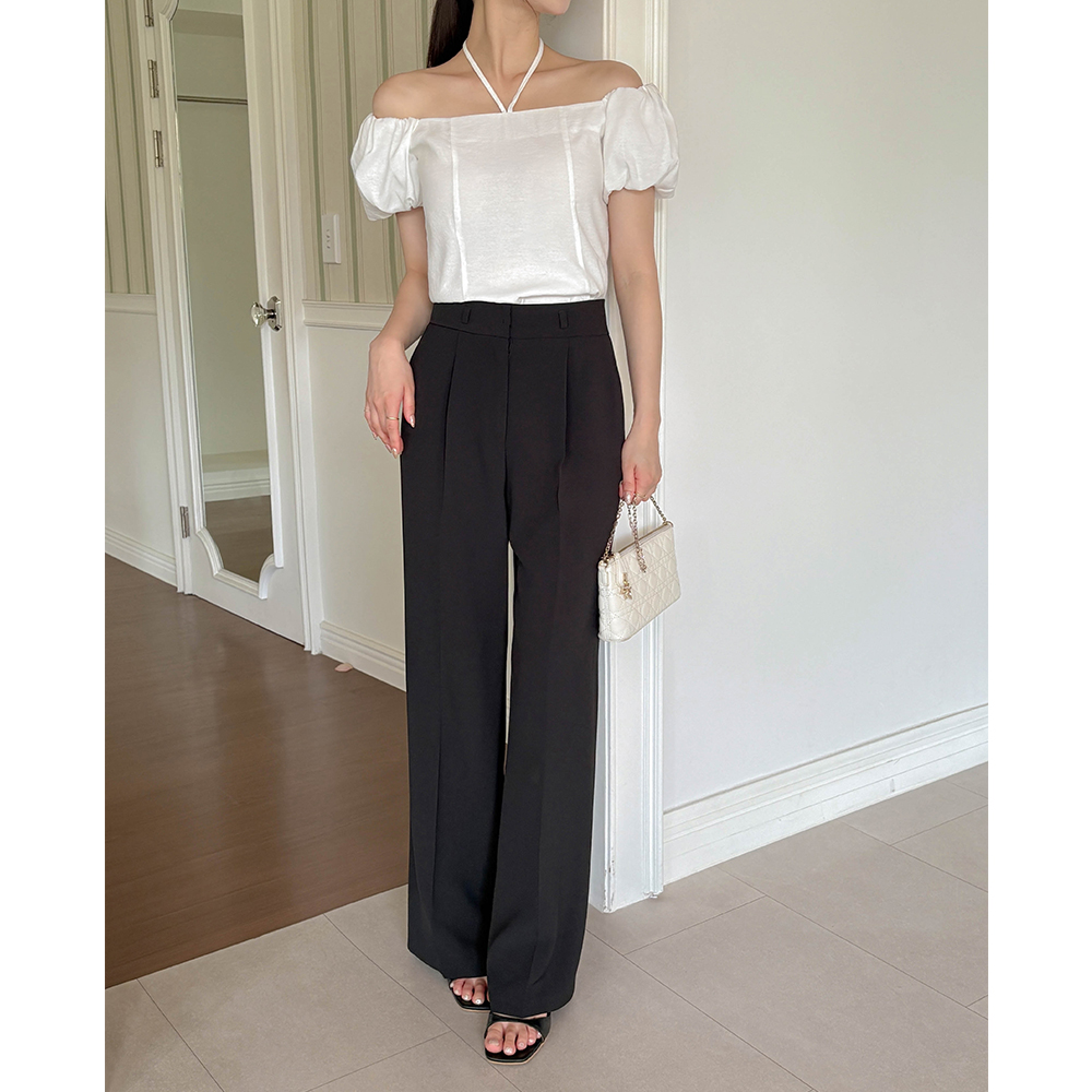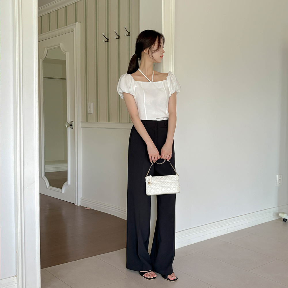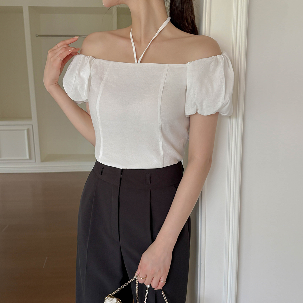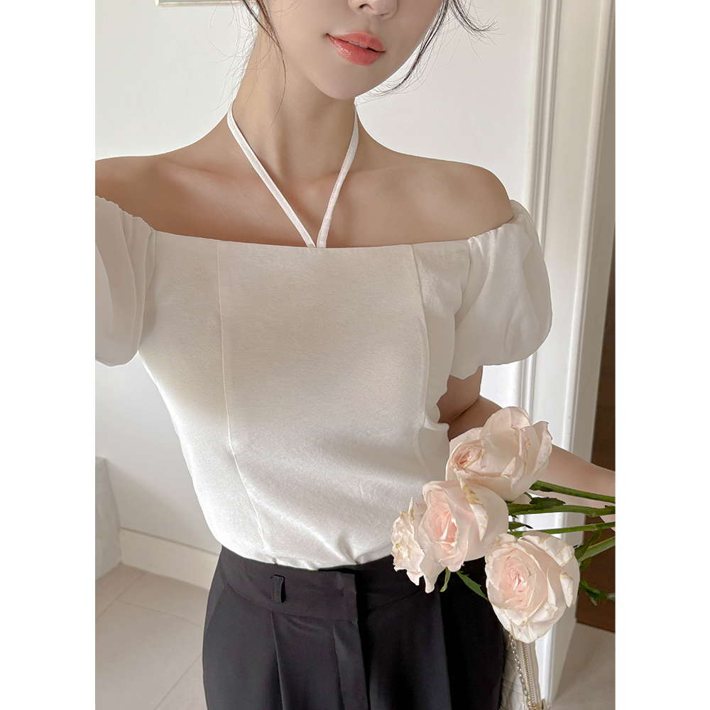 蝴蝶结带子 方领 泡泡袖 罩衫