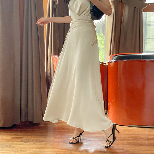 绸缎 交叉 罩衫&裙子 SET