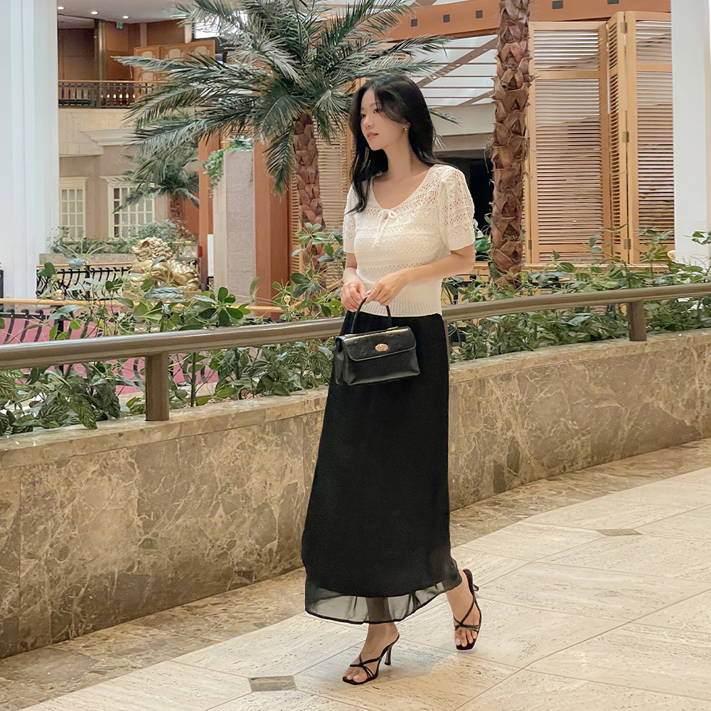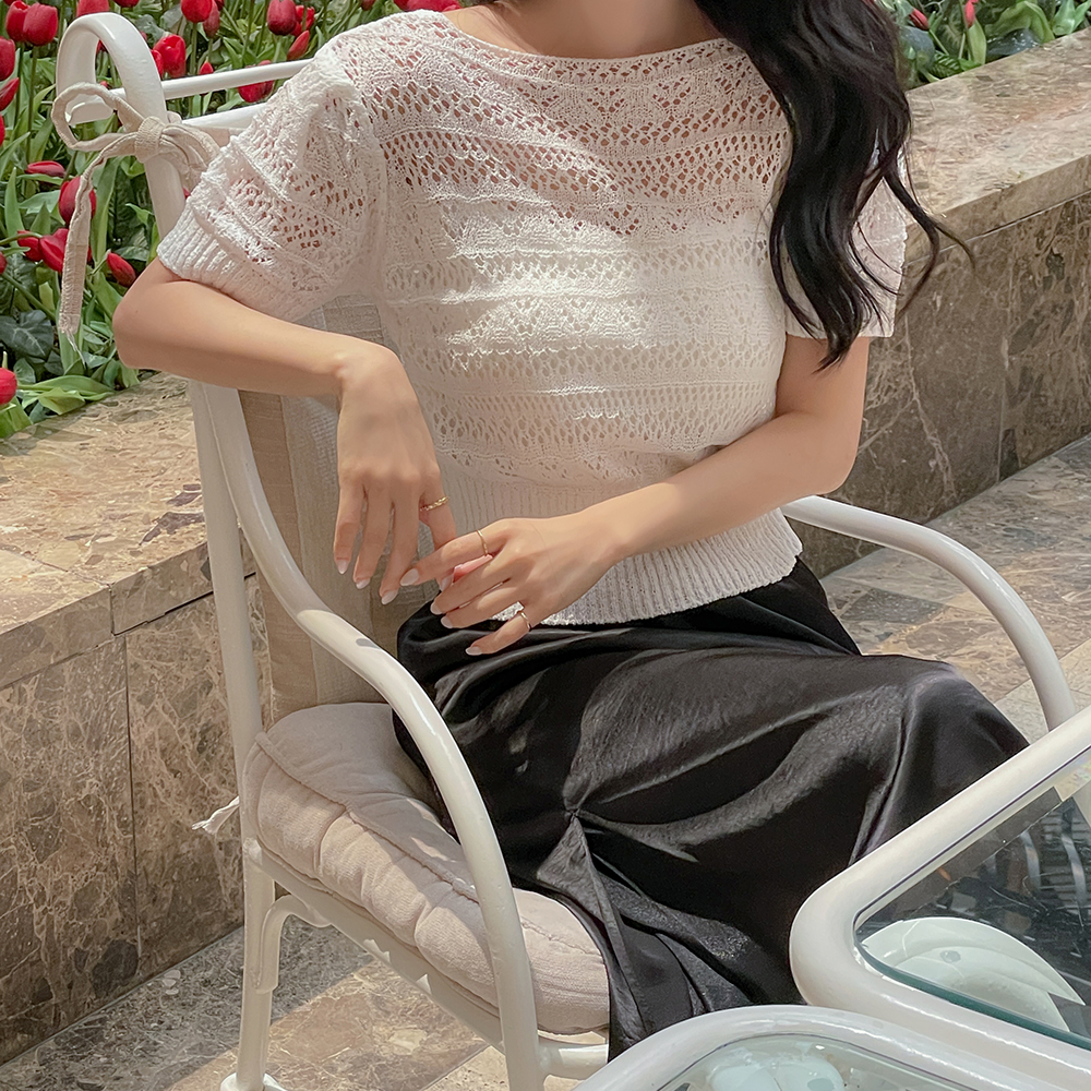 双重 蝴蝶结 钻石纹 印花 短袖 针织衫