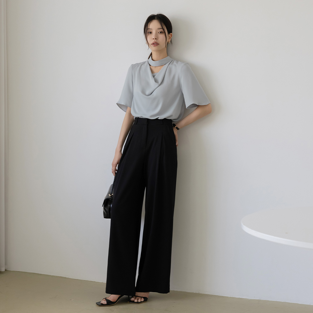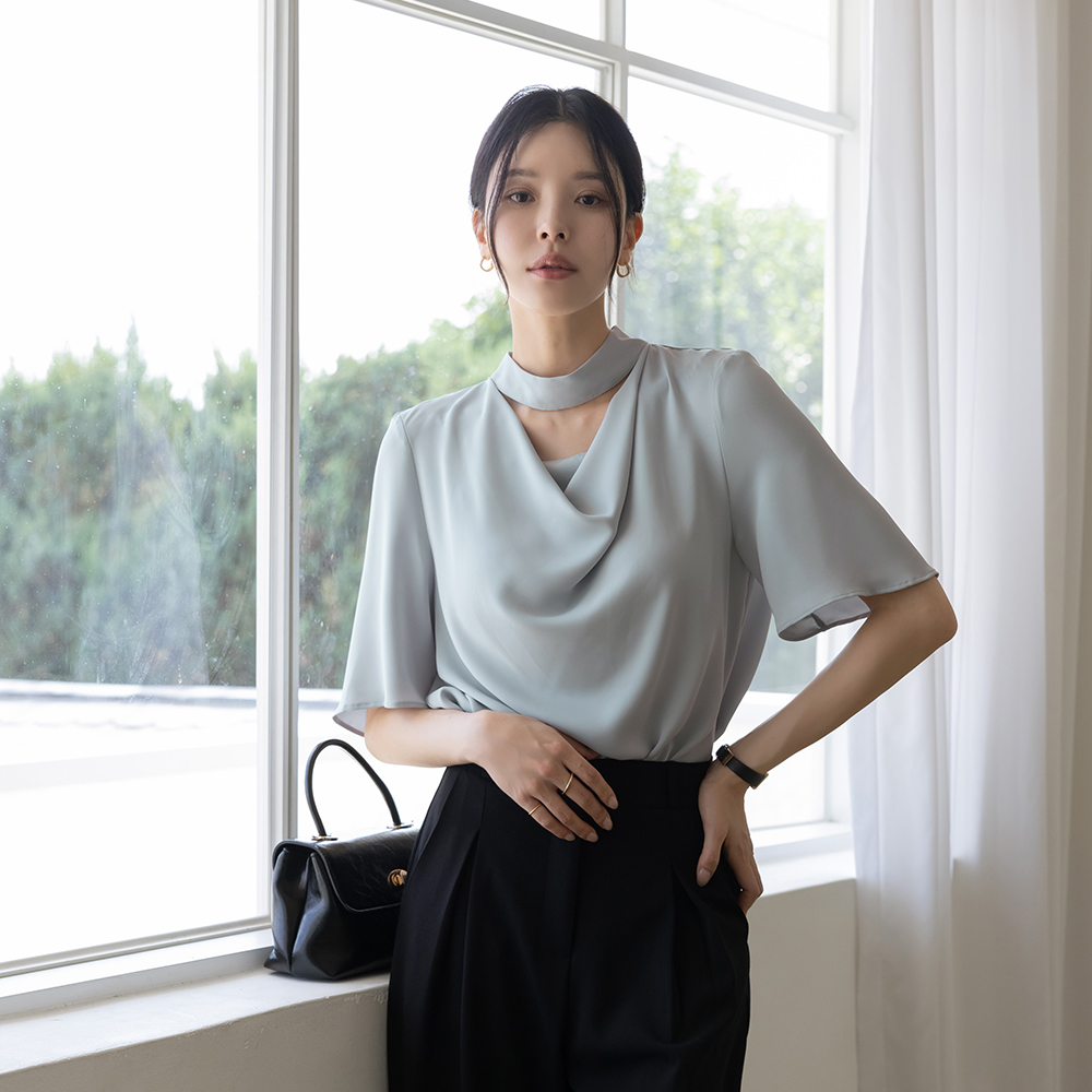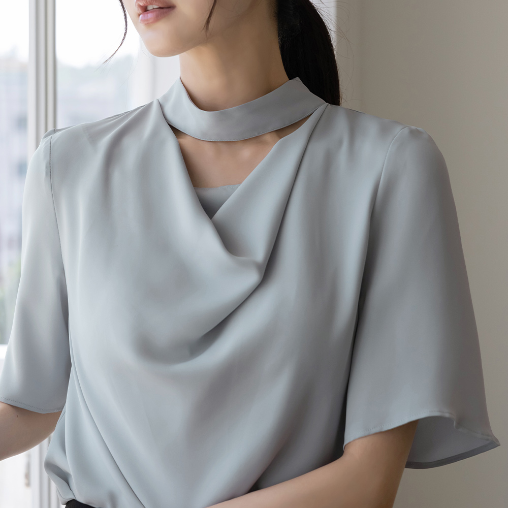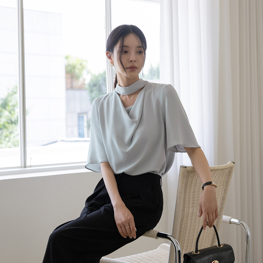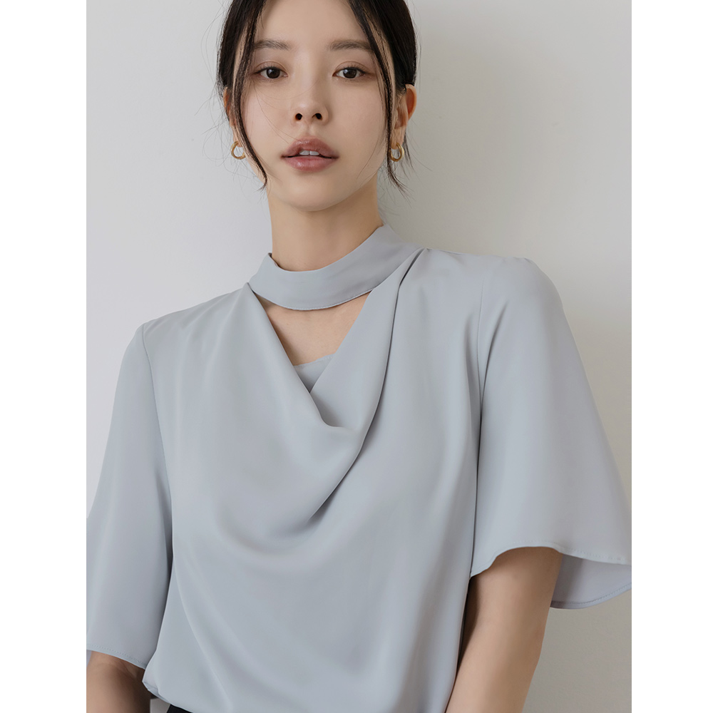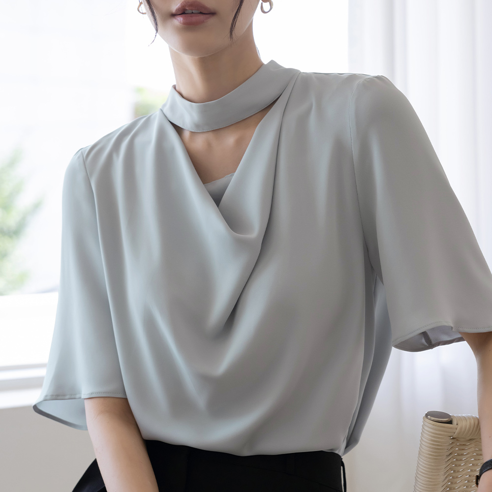 优雅 披盖 开口领子 短袖 罩衫