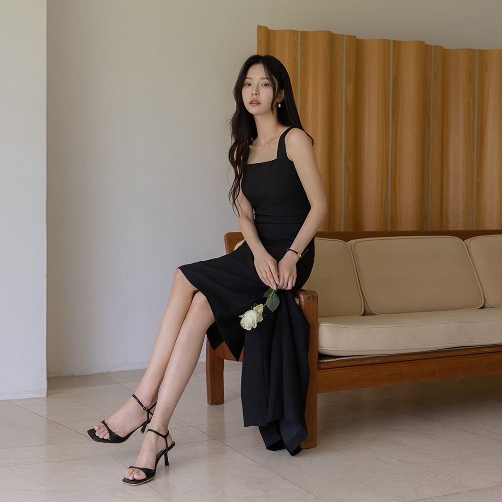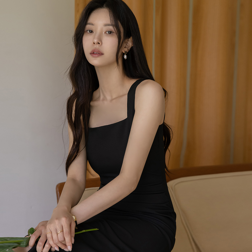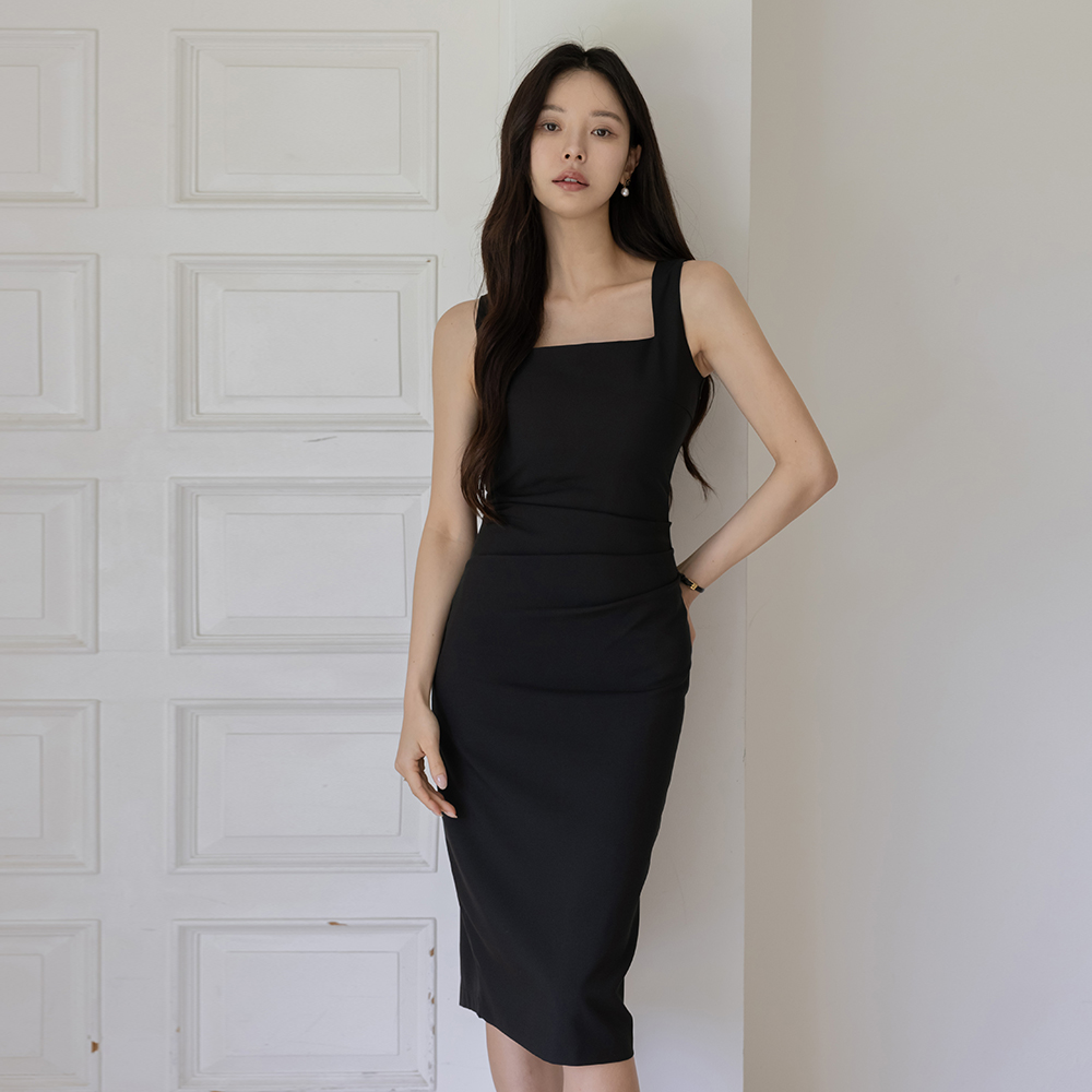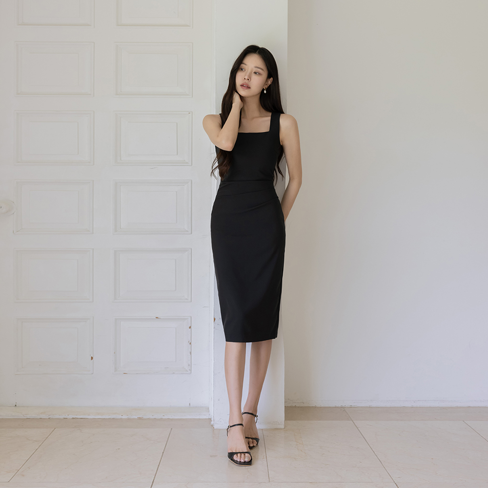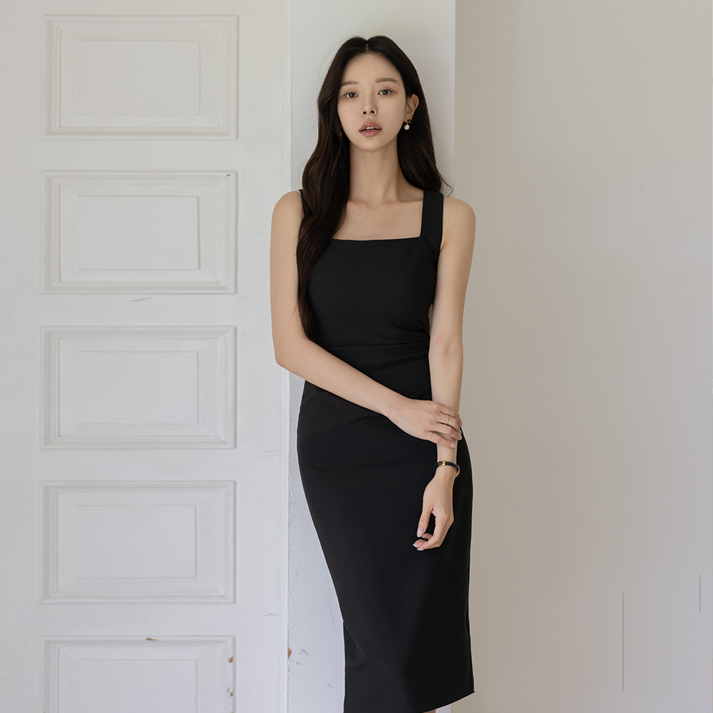 华丽 褶皱 弹力 H字型 背心 连衣裙