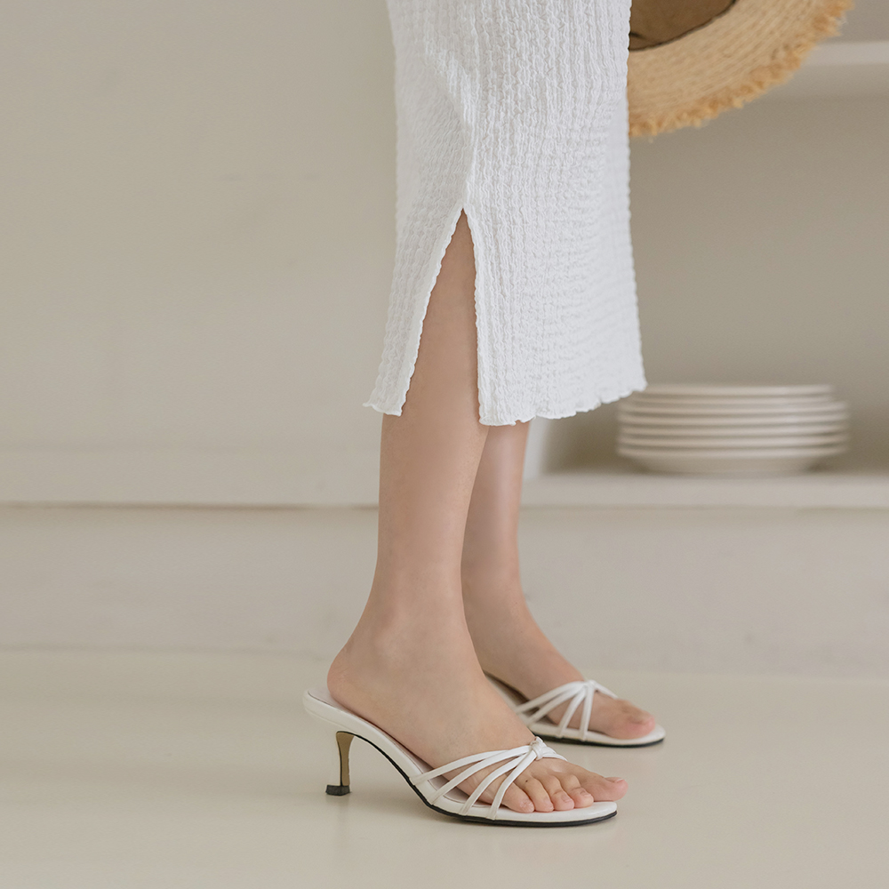 圆领 苗条 皮条/束带 拖鞋 高跟鞋