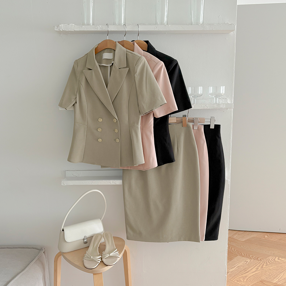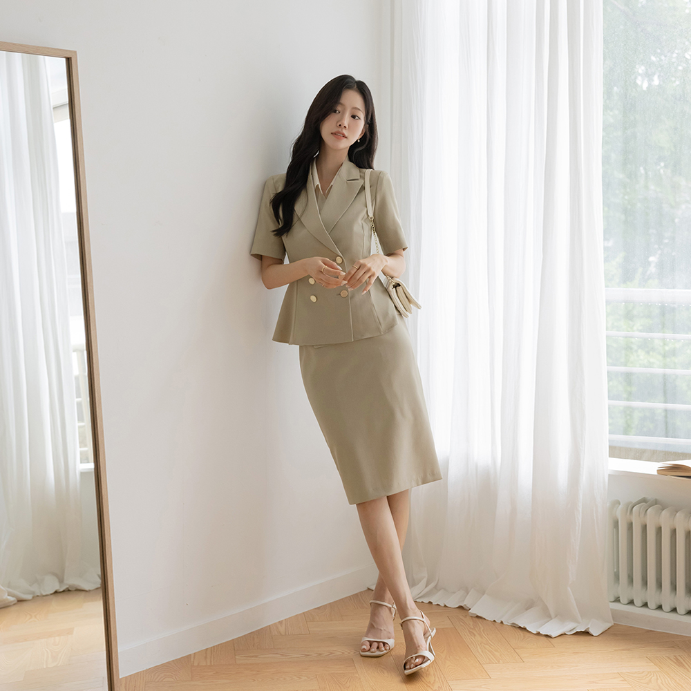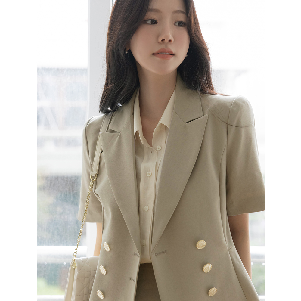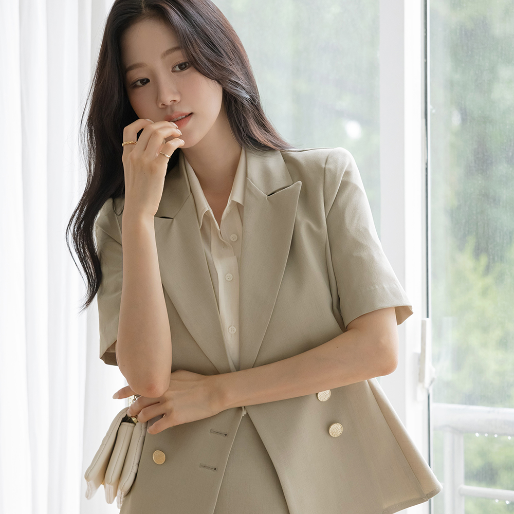 勒内 双 扣子 荷叶边 Set-up 夹克