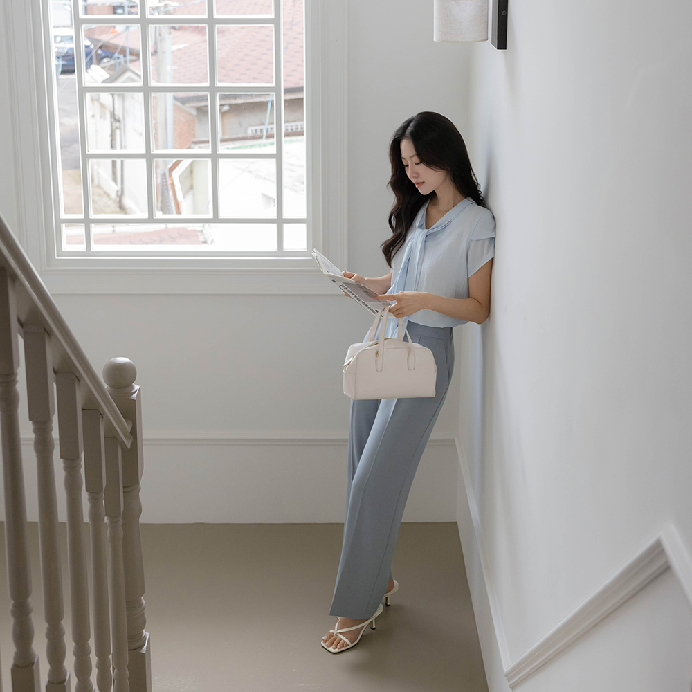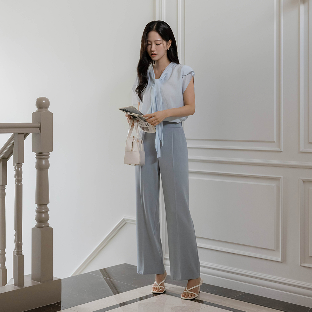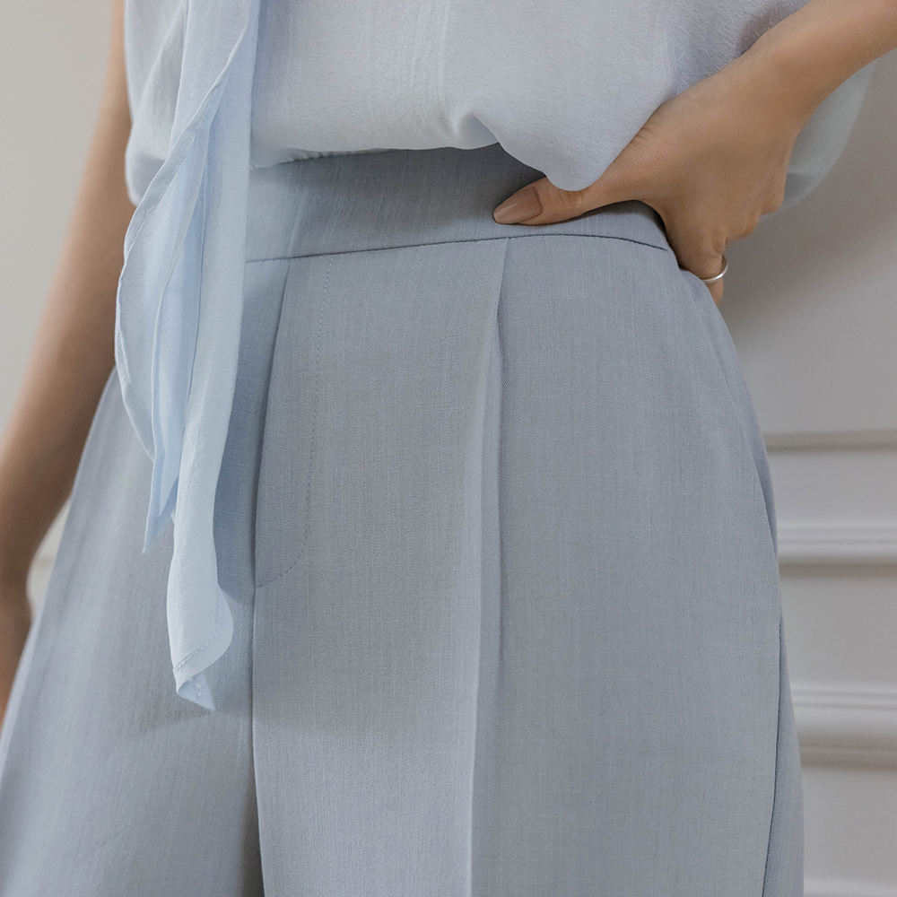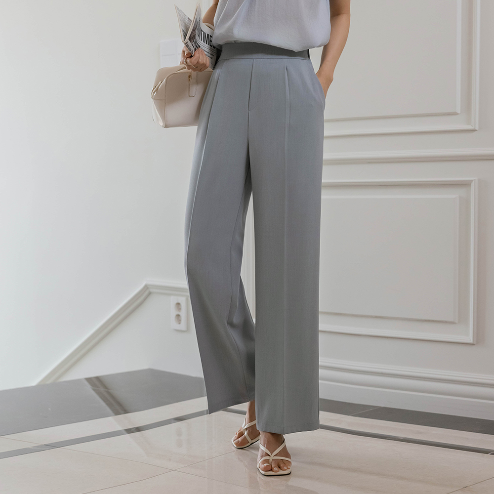 空气 柔丝 쫀득 一字型 后侧松紧带 宽松长裤