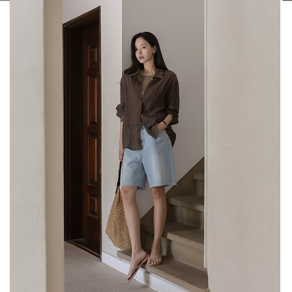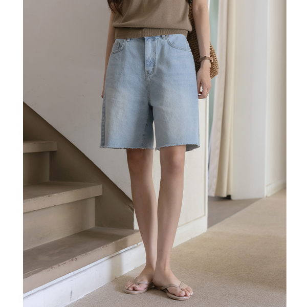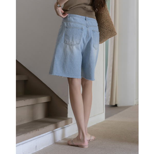 日常 裁剪 百慕大 牛仔色 裤子