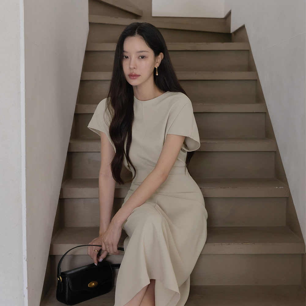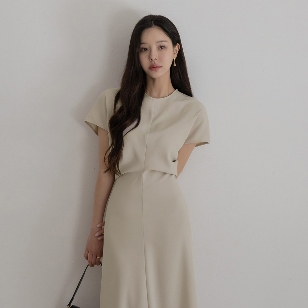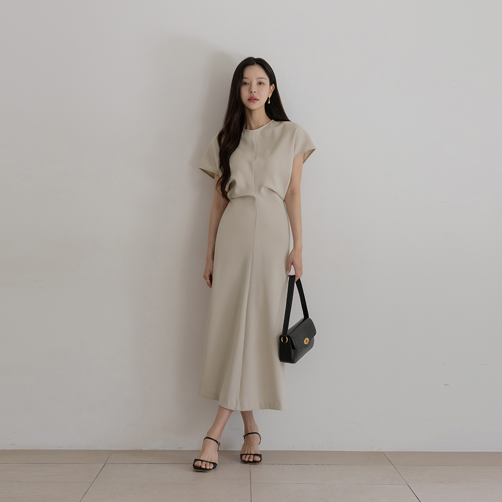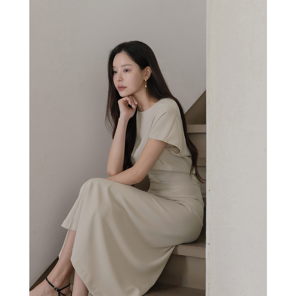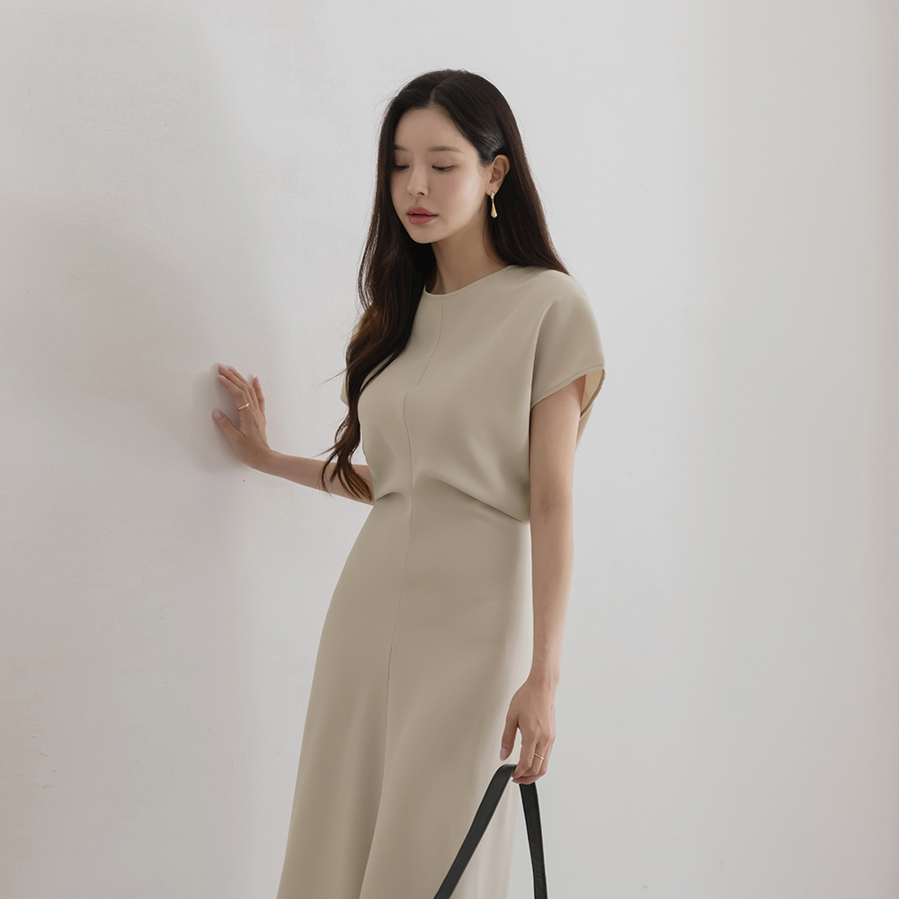 奥黛丽 帽檐袖 내추럴핏 长款 连衣裙