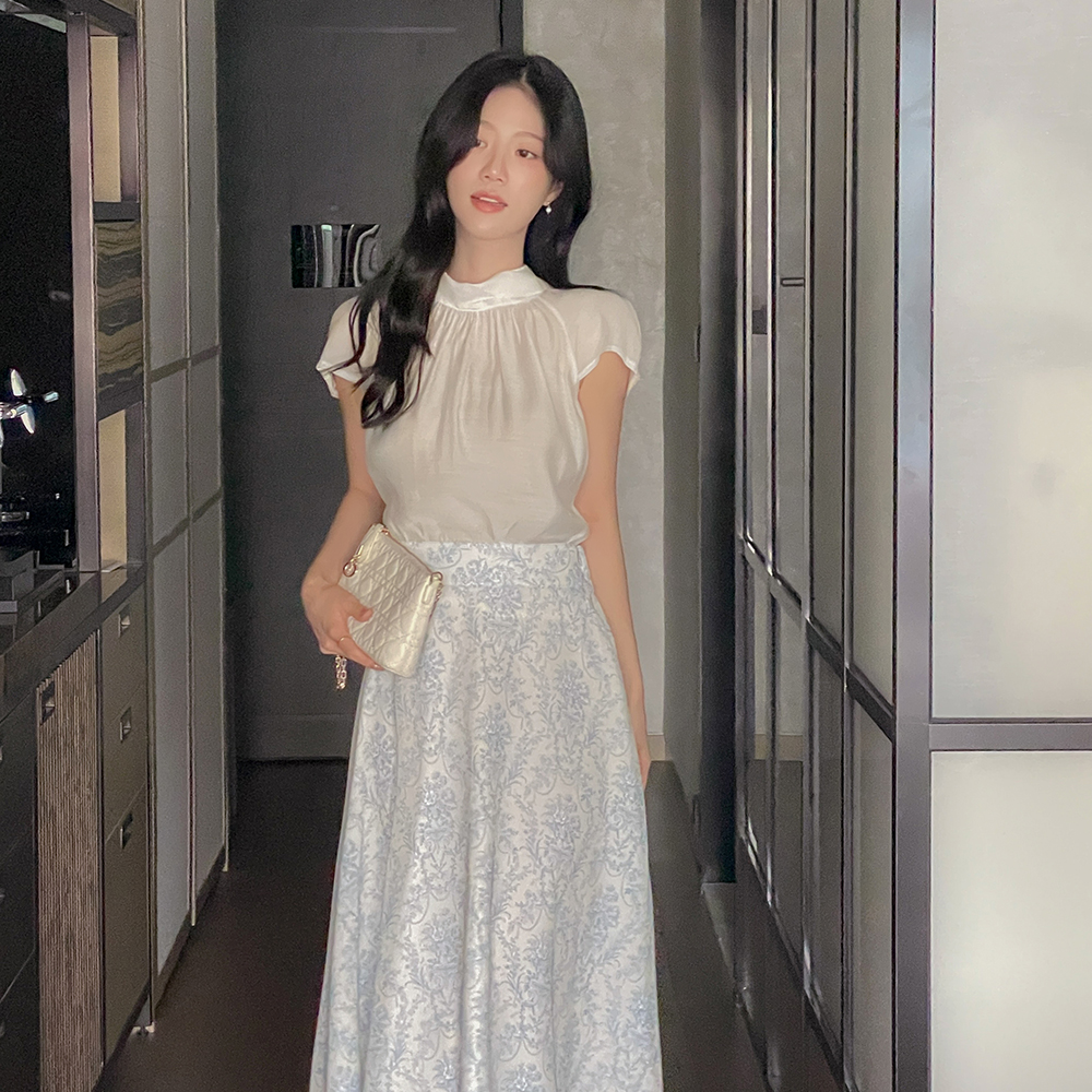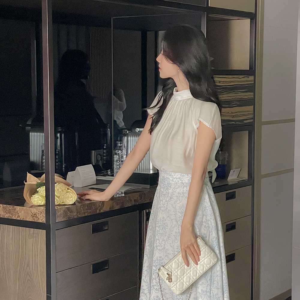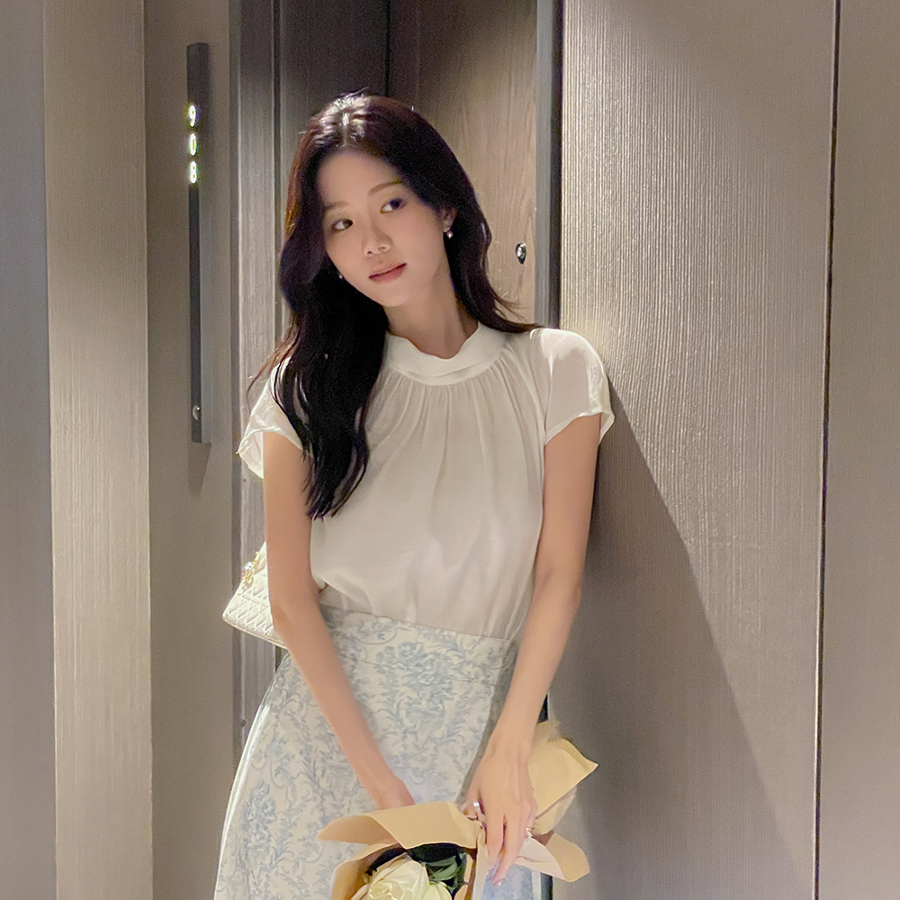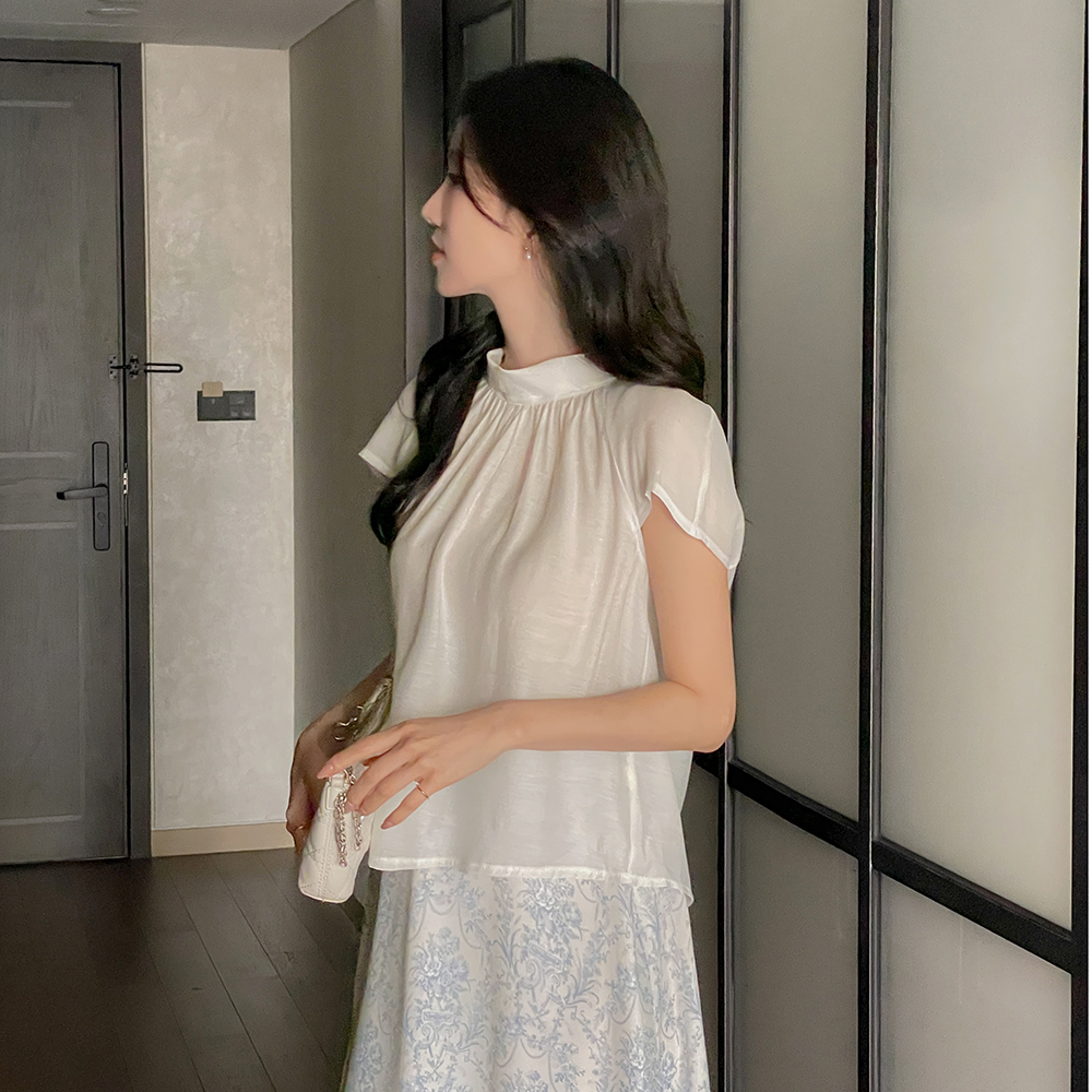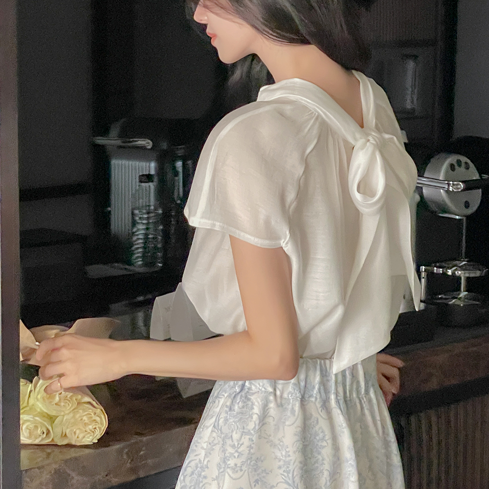 软绵绵软的 褶皱领 后面蝴蝶结 透视 罩衫