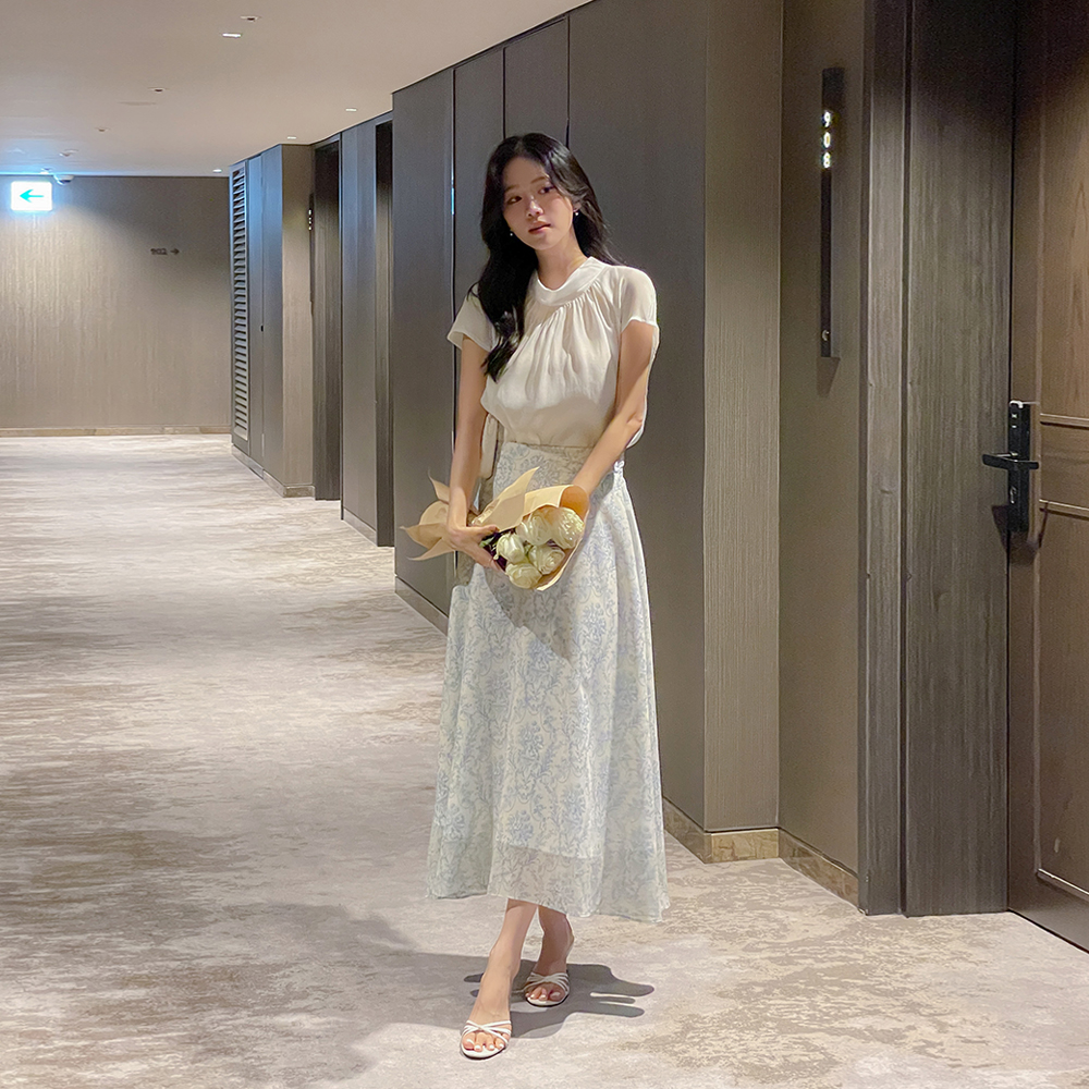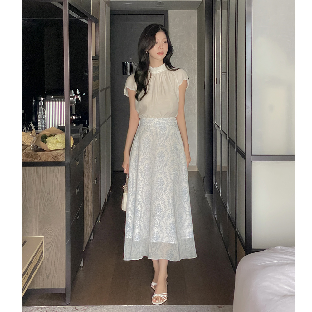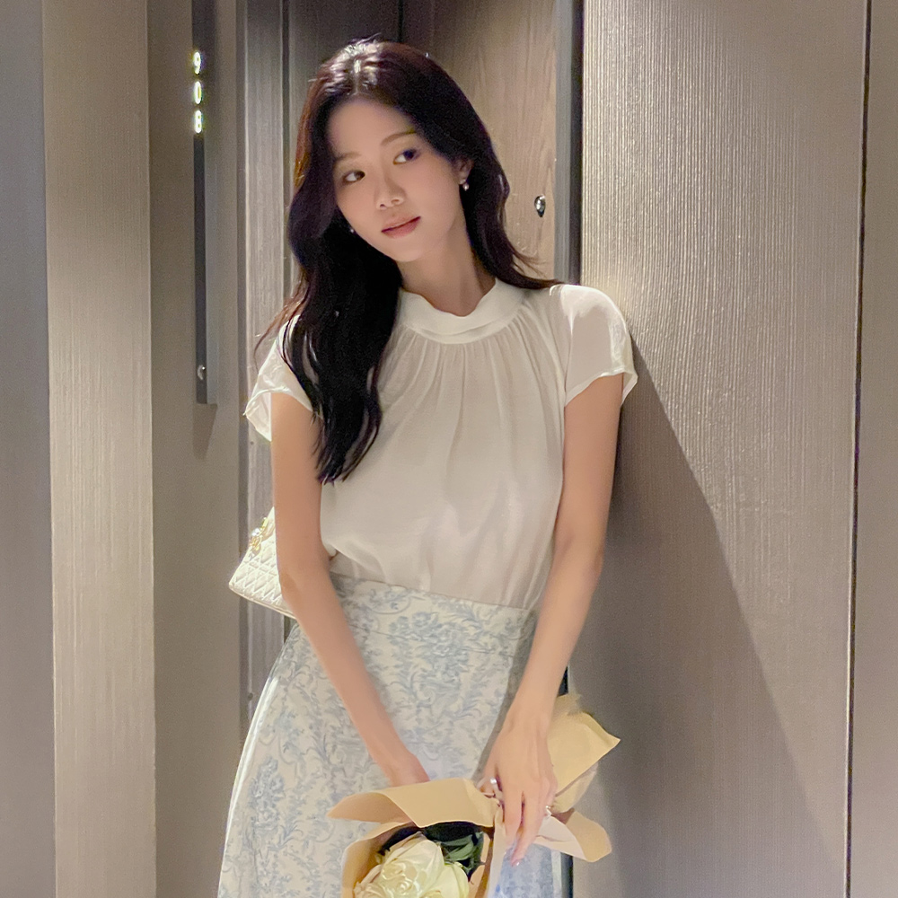 软绵绵软的 褶皱领 后面蝴蝶结 透视 罩衫