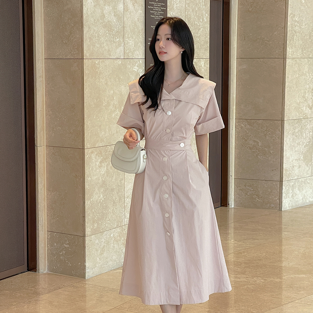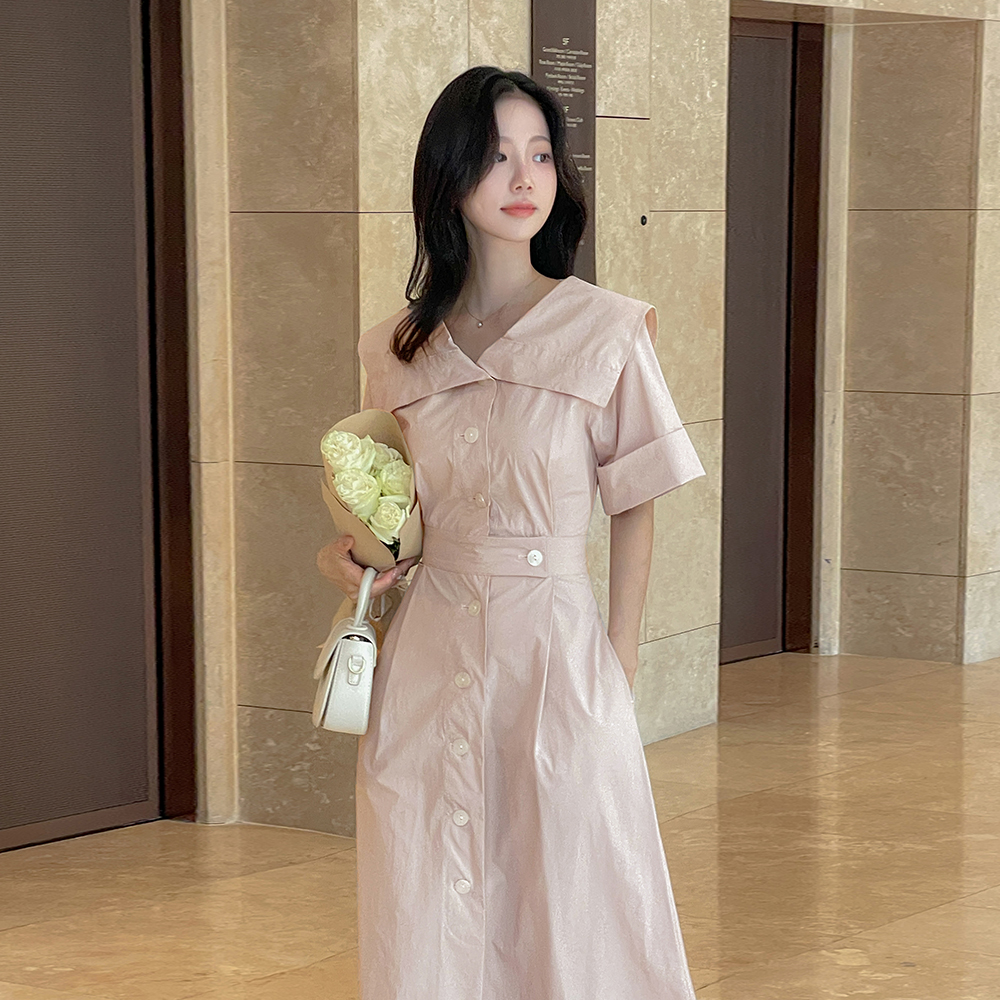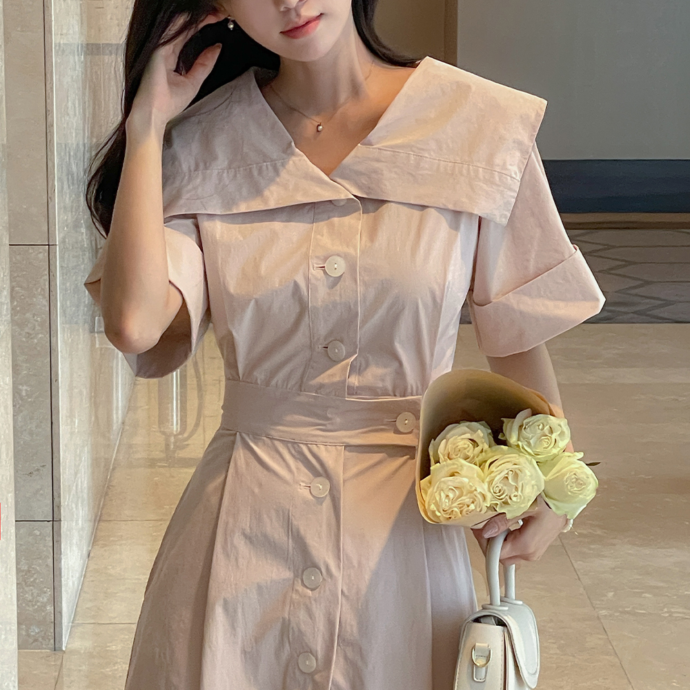 沙沙响 宽松 领子 弹力 A字型 连衣裙
